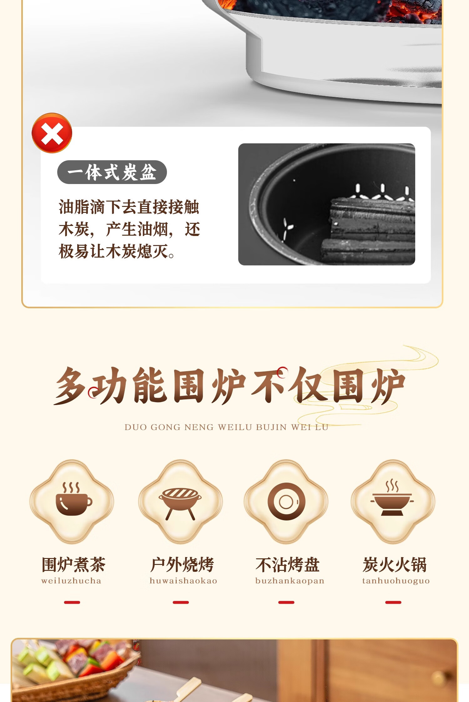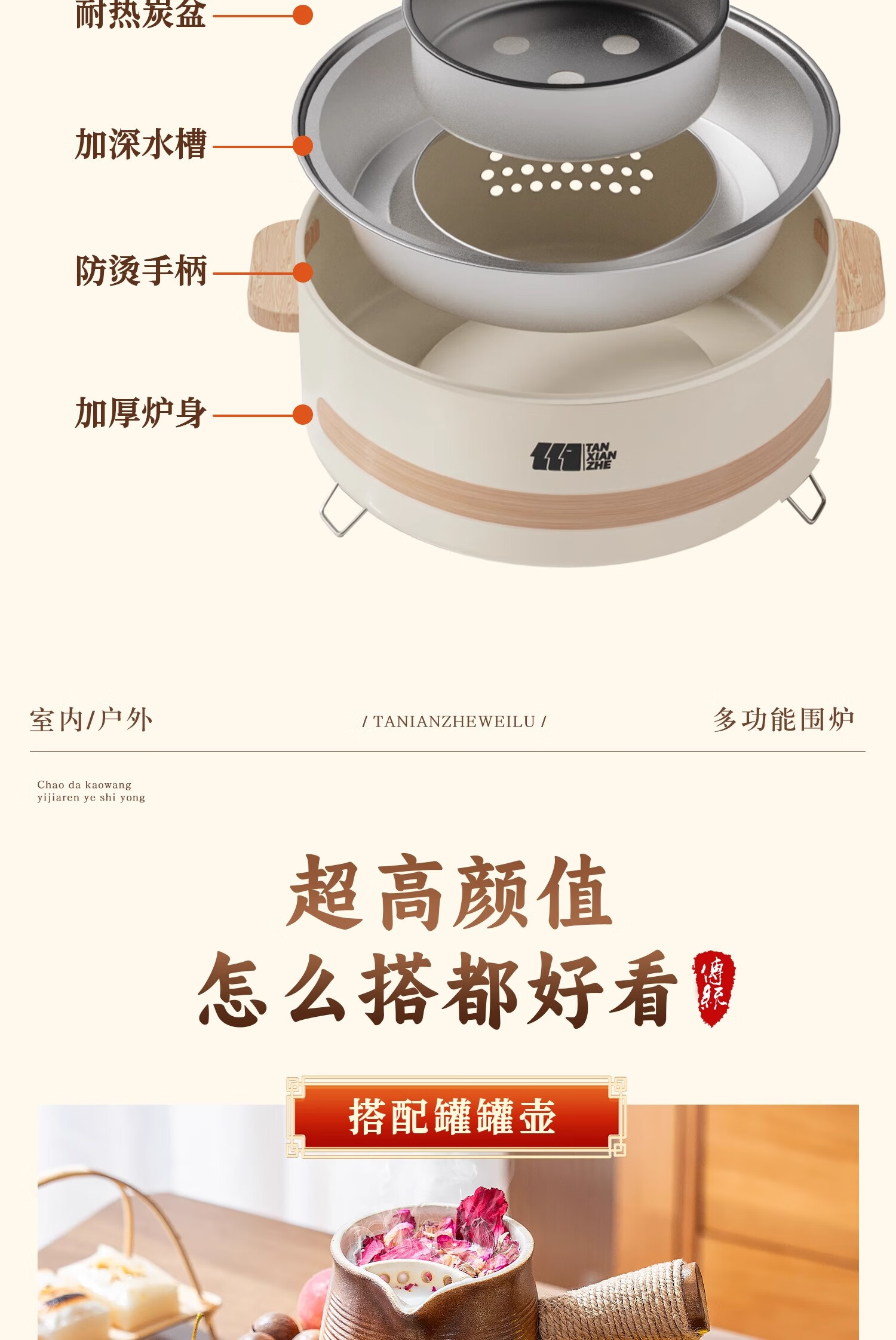 北极狼围炉煮茶家用庭院室内烤火盆煮茶烧水冬季户外露营烧烤取暖 59cm围炉5斤碳5件套