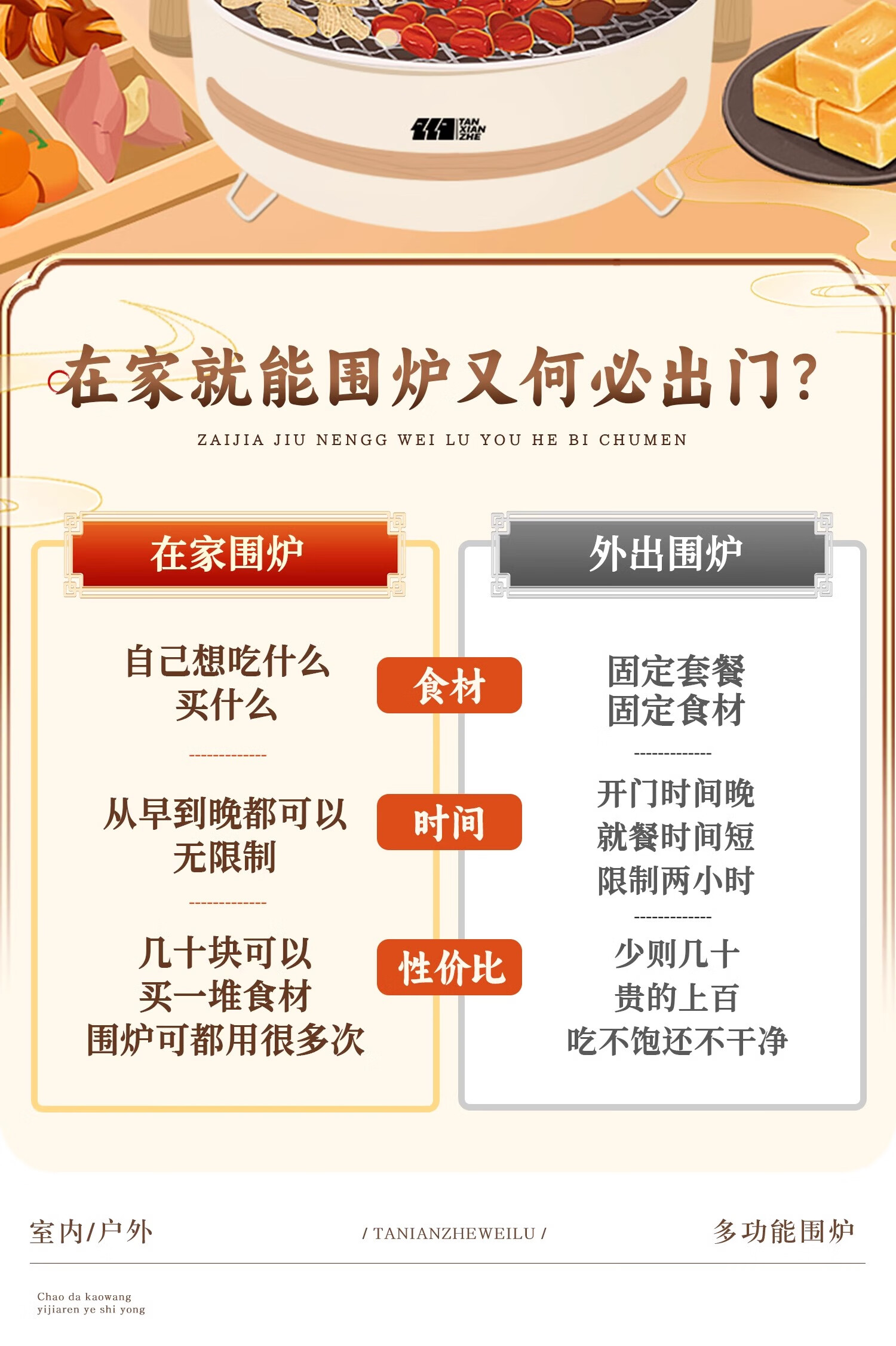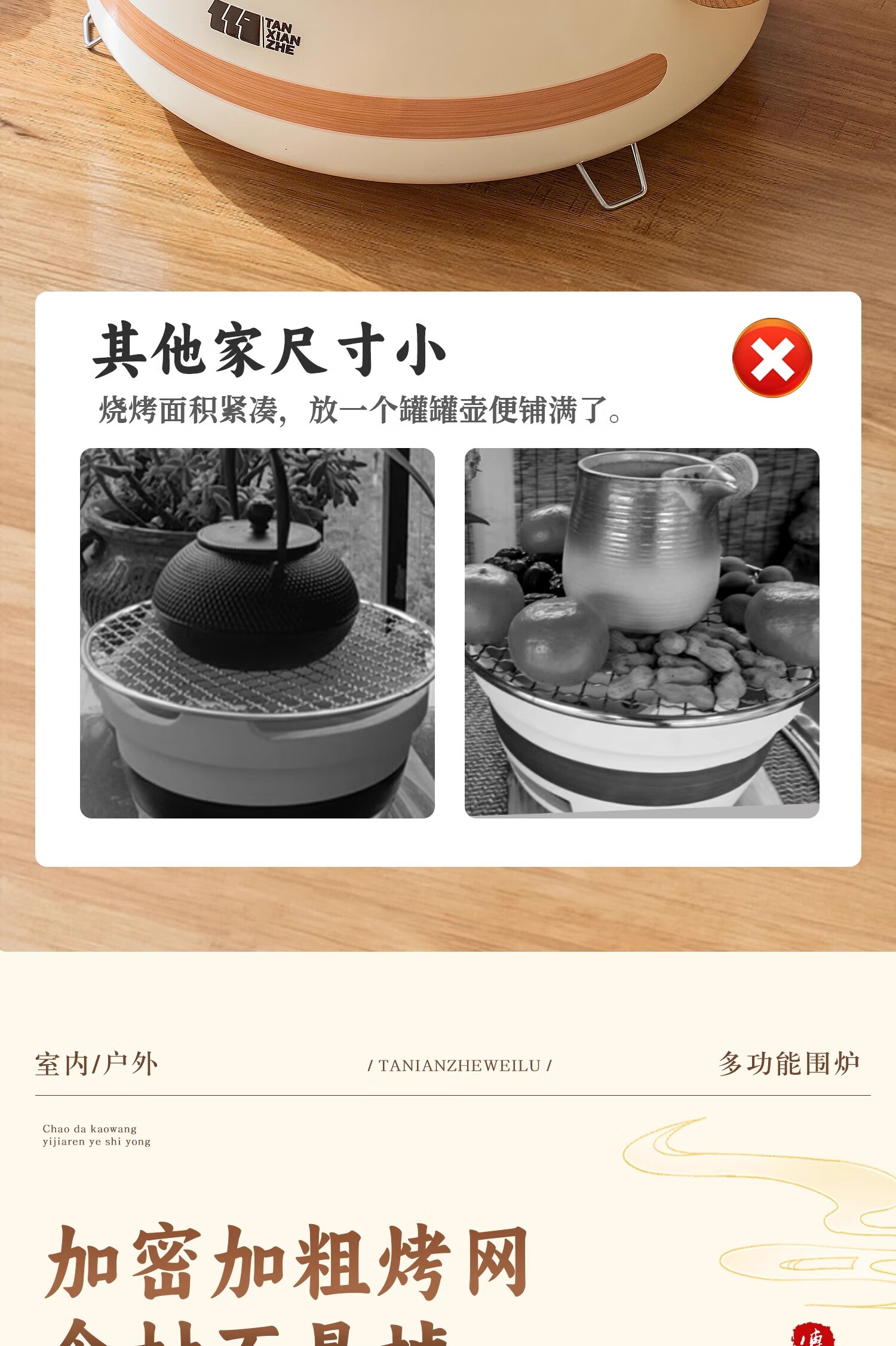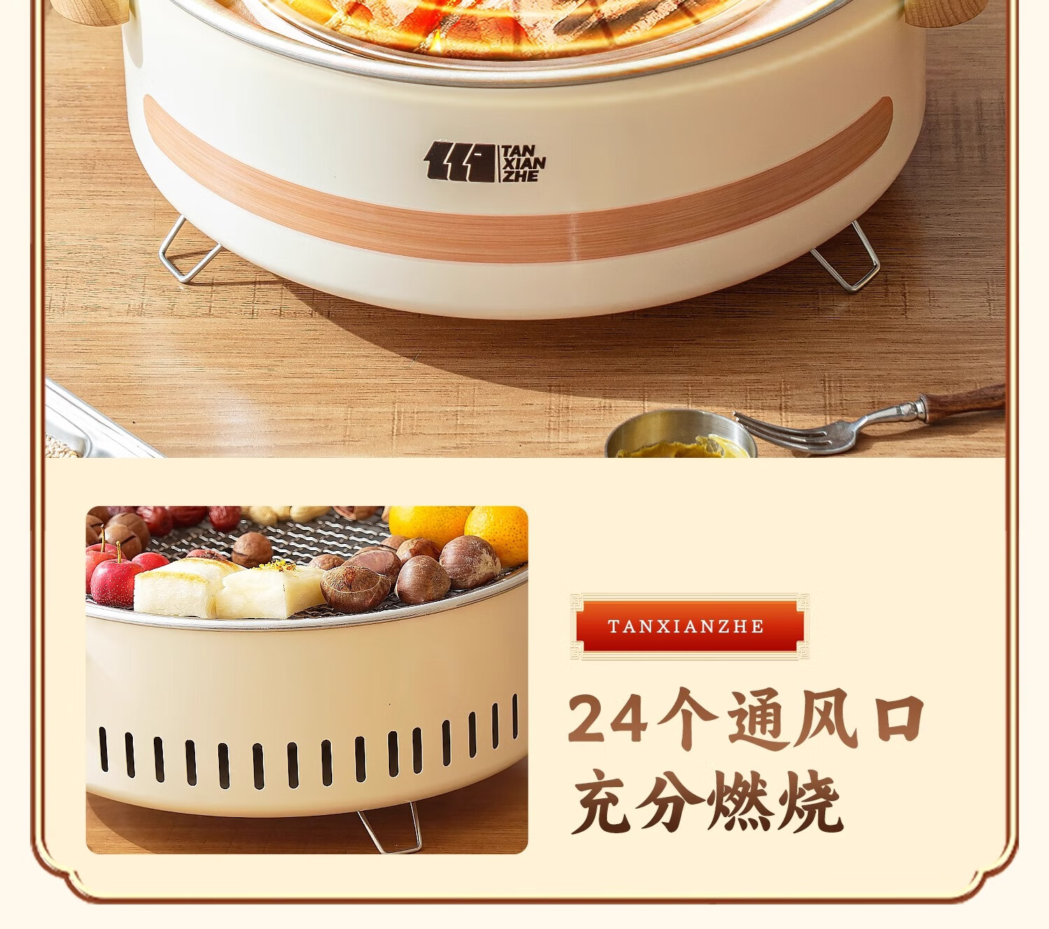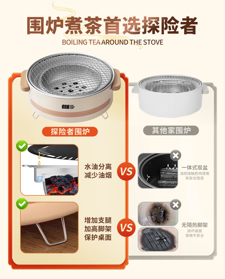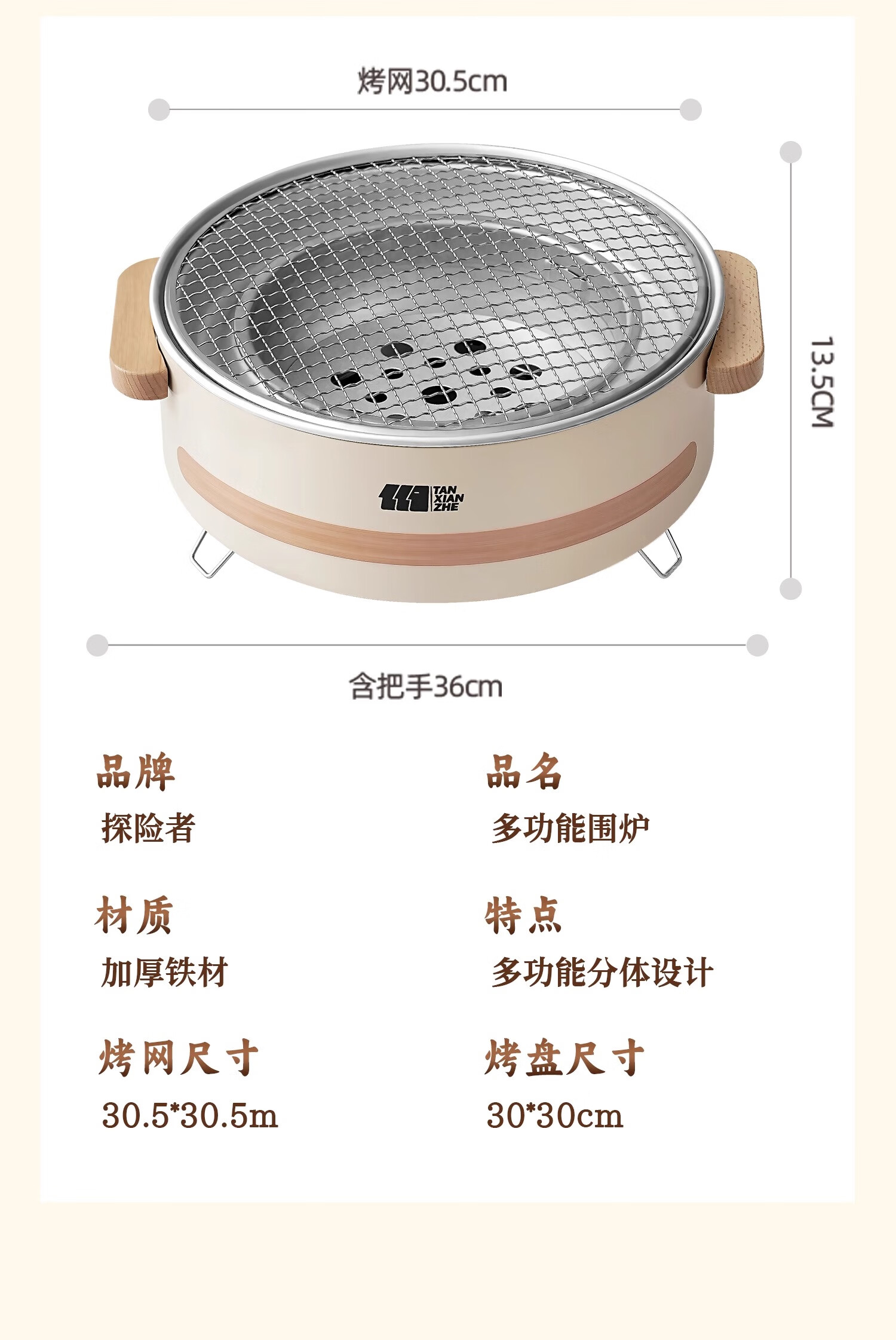 探险者探险者围炉煮茶套装电碳两用围炉桌烧烤煮茶一体烤火炉家用围聚煮 [60cm]电碳两用围炉桌