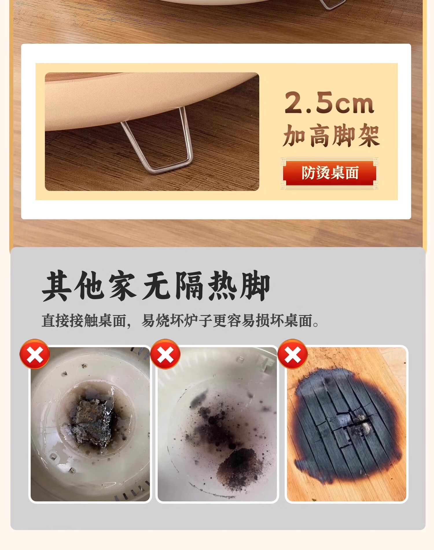 抽屉式圆形炉体铸铁炭炉冬天围炉煮茶取暖火锅烧烤铸铁炉圈嵌入用 炉面直径36厘米可调火力双层炉炉高21