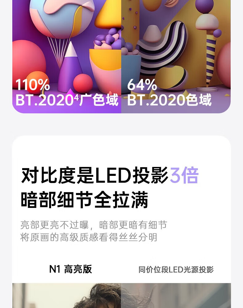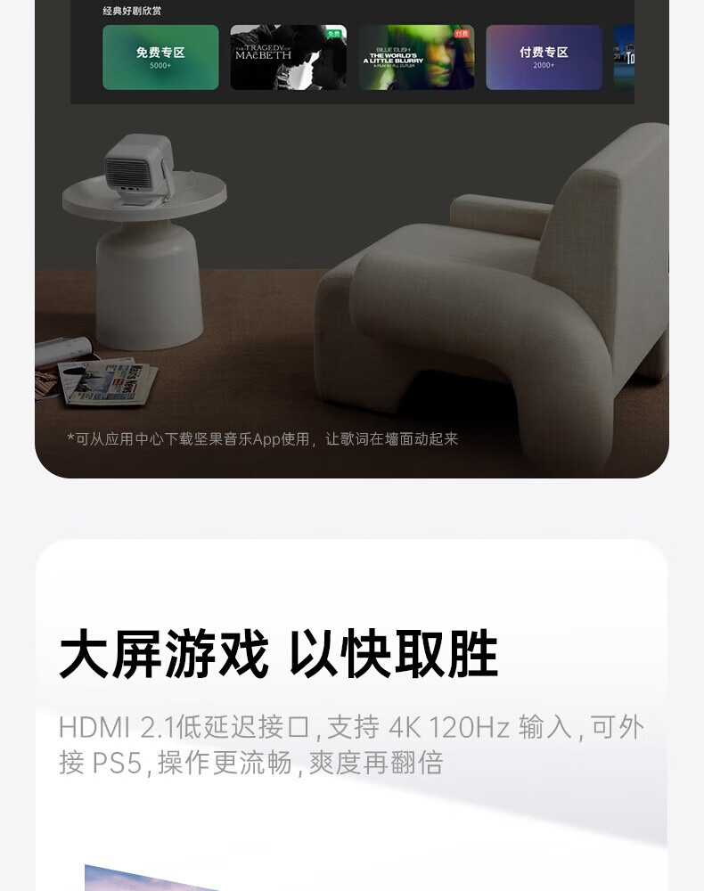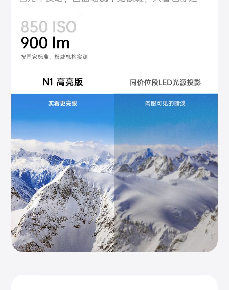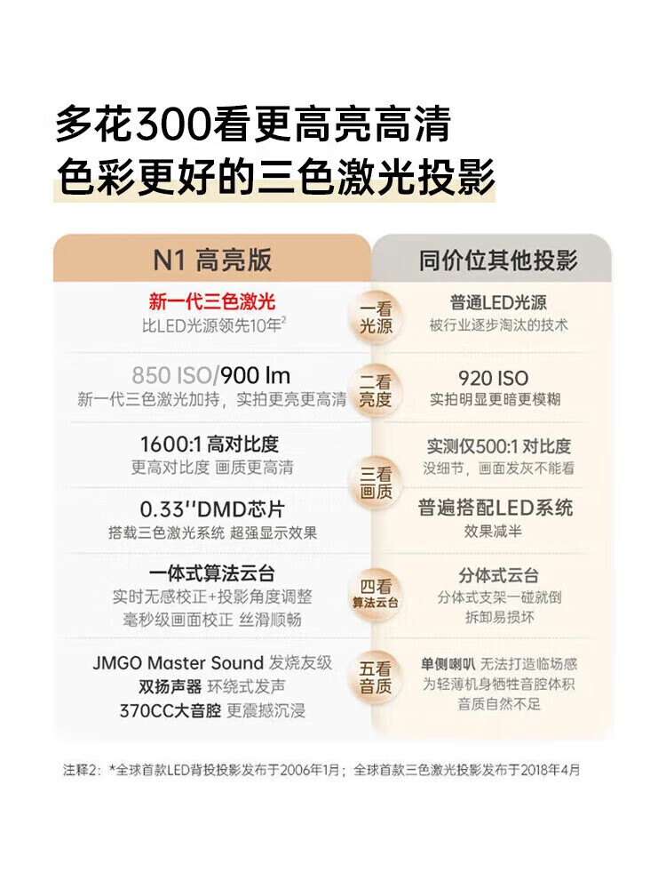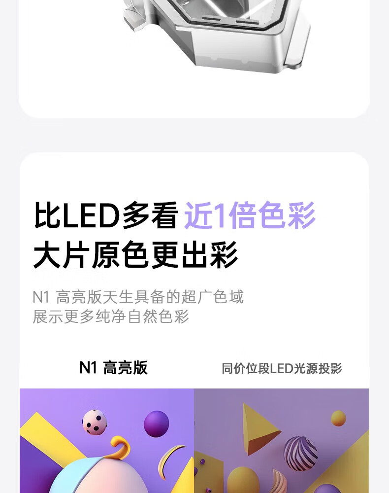坚果(JMGO)N1 高亮版纯三色激光云台投影仪超高清白天投墙投影仪 家庭影院(900CVIA高亮+0.33DMD芯片)