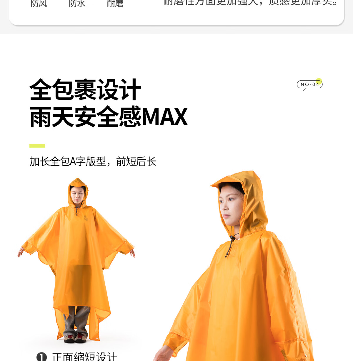 牧高笛雨披雨衣户外登山徒步连帽防暴雨可伸手便携轻量骑行多功能雨衣 NX23667003柠绿