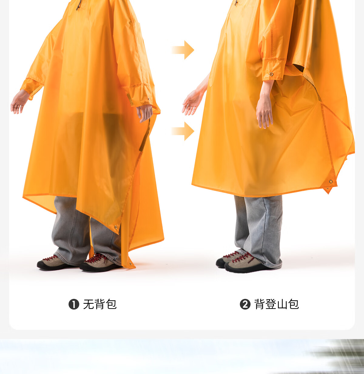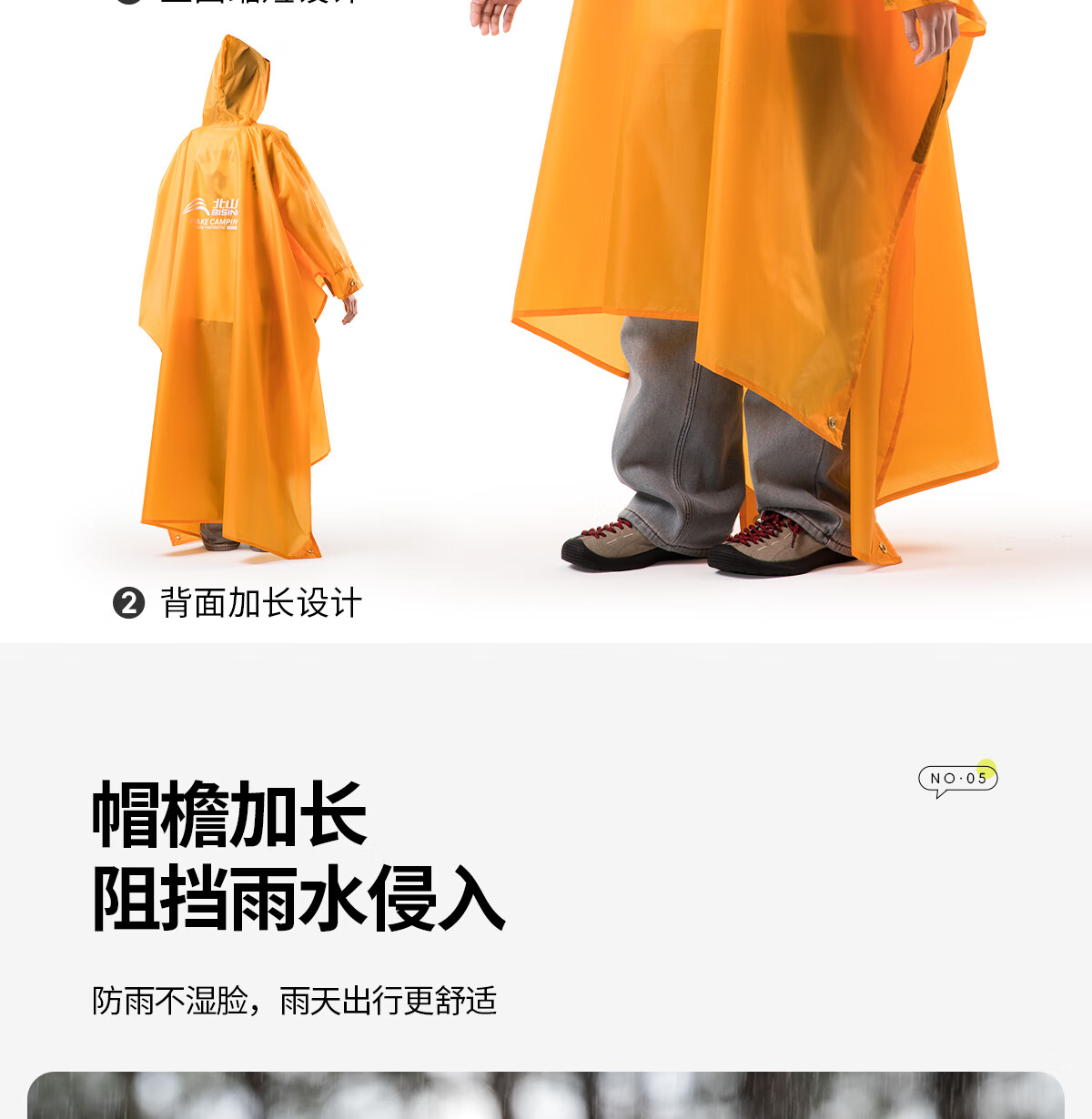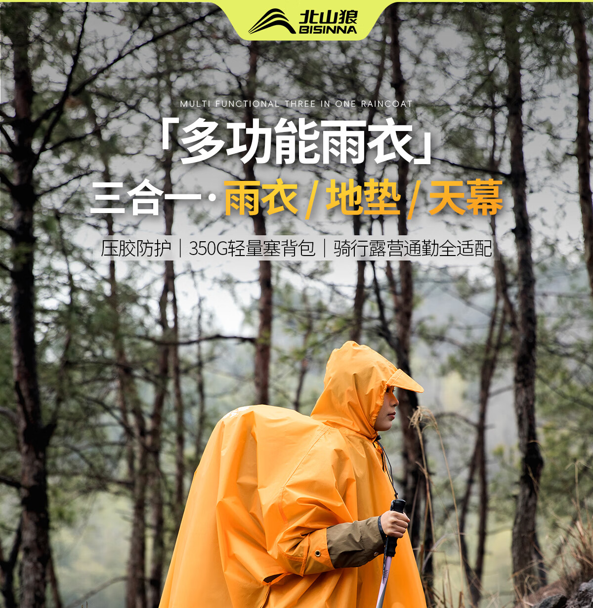 北山狼 户外雨衣露营登山徒步雨披三合一折叠便携防雨装备 【香橙+水蓝】-情侣款更优惠