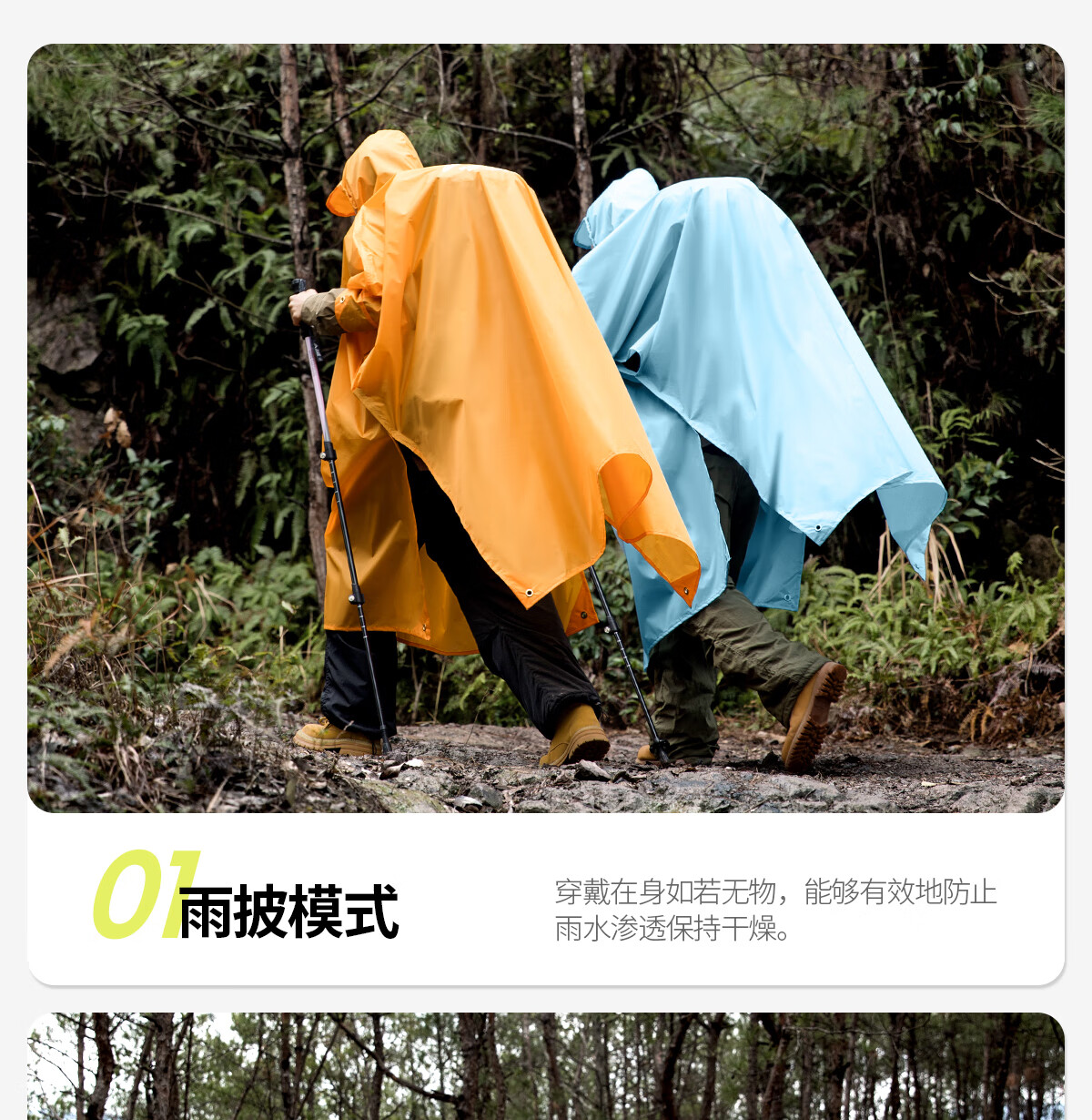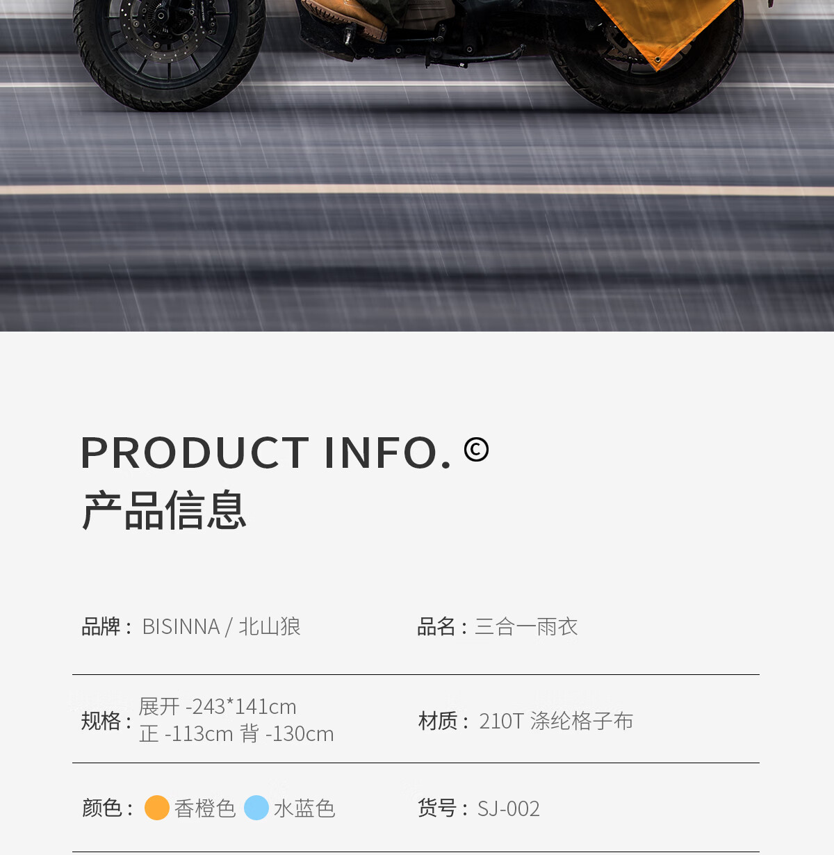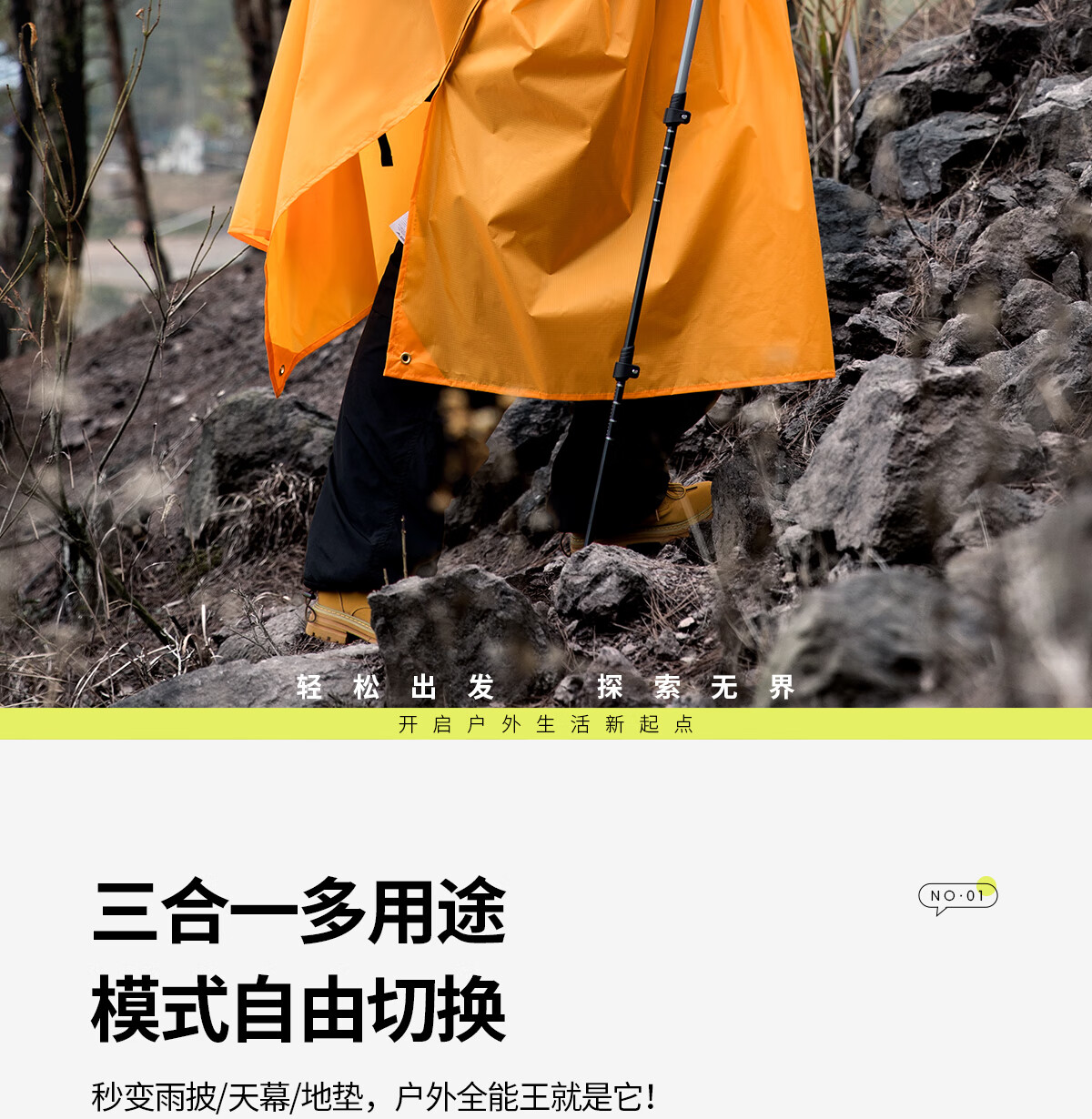 北山狼 户外雨衣露营登山徒步雨披三合一折叠便携防雨装备 【香橙+水蓝】-情侣款更优惠