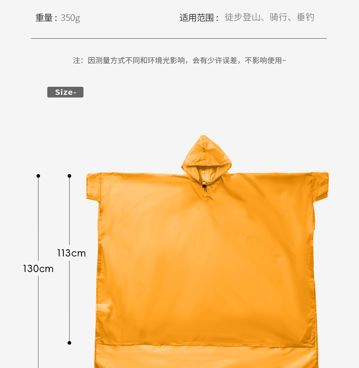 以前买的一次性雨衣质量太差了,而且不能调节,户外穿起来还是容易打湿衣服,看到这款雨衣立即购买了,比较大,可以调节,还能当小型天幕和地布,防水效果太厉害了,贵有贵的道理