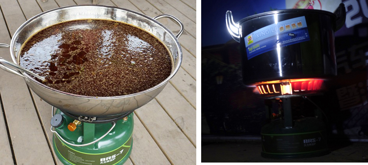 由于火力比想象的猛多了 第一次在上面用高压锅煮饭 就烧糊了,适合爆炒。 想要火小点吃火锅 有些难控制。
