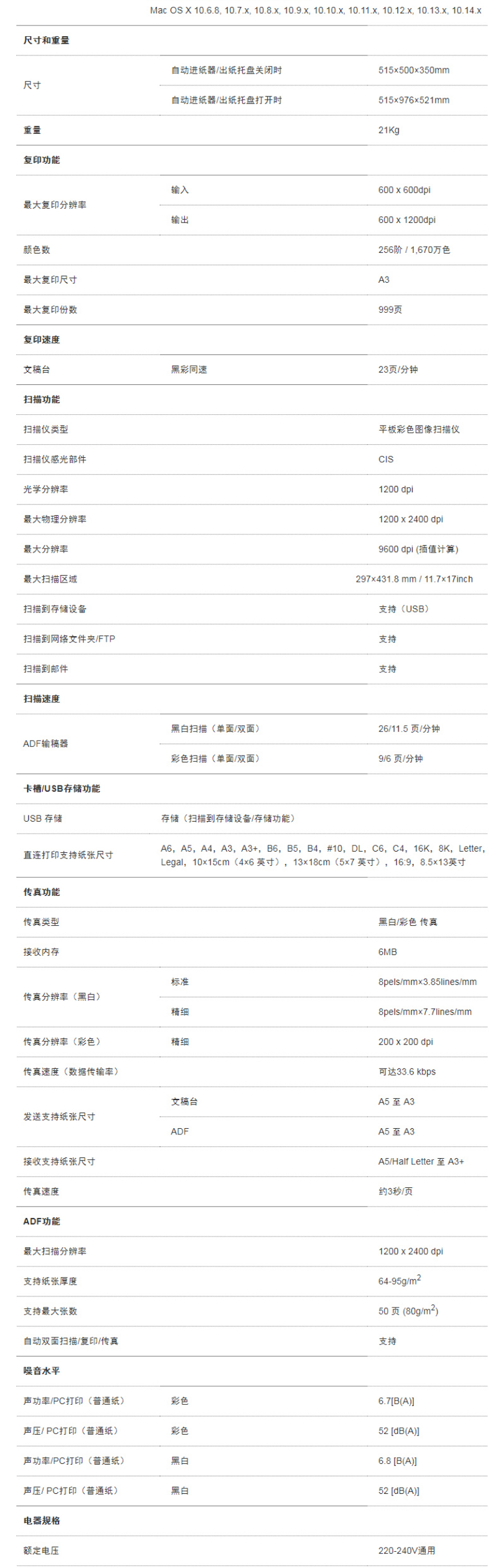 最大支持幅面