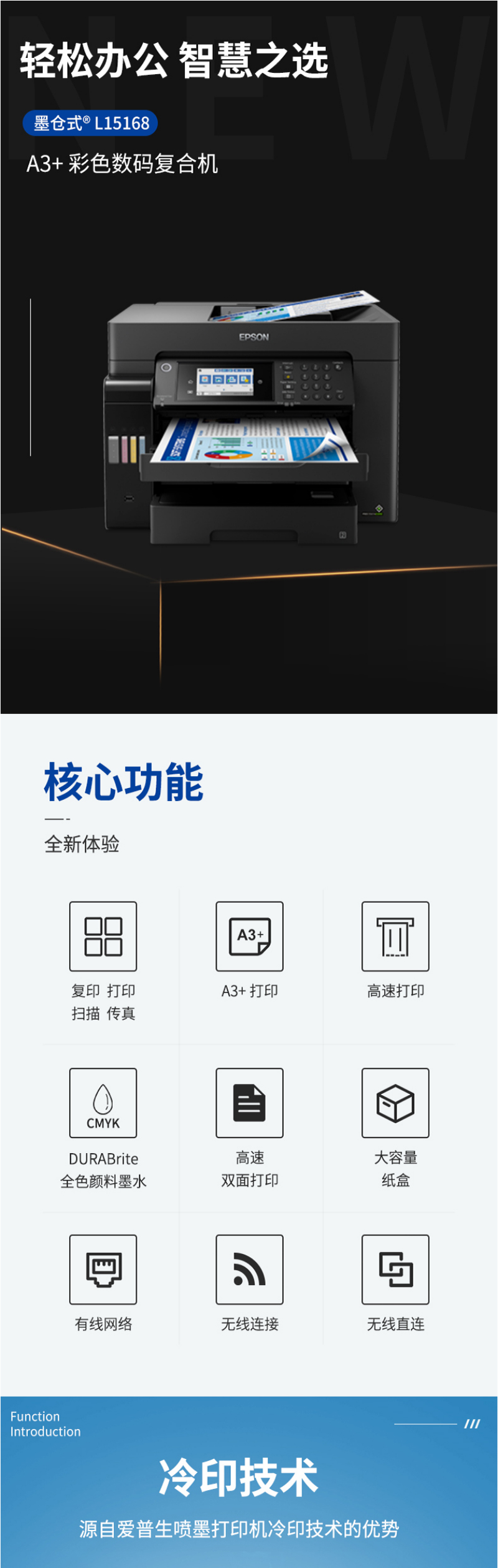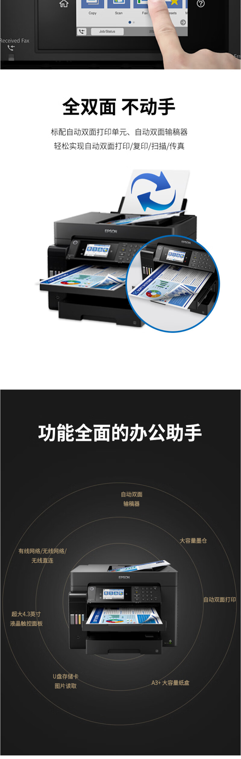 惠普 爱普生 L15158/15168 A3+彩色打印机复合机 商务办公 有线/无线(黑白彩色同速 ) L15168 标配【含墨水+上门安装】