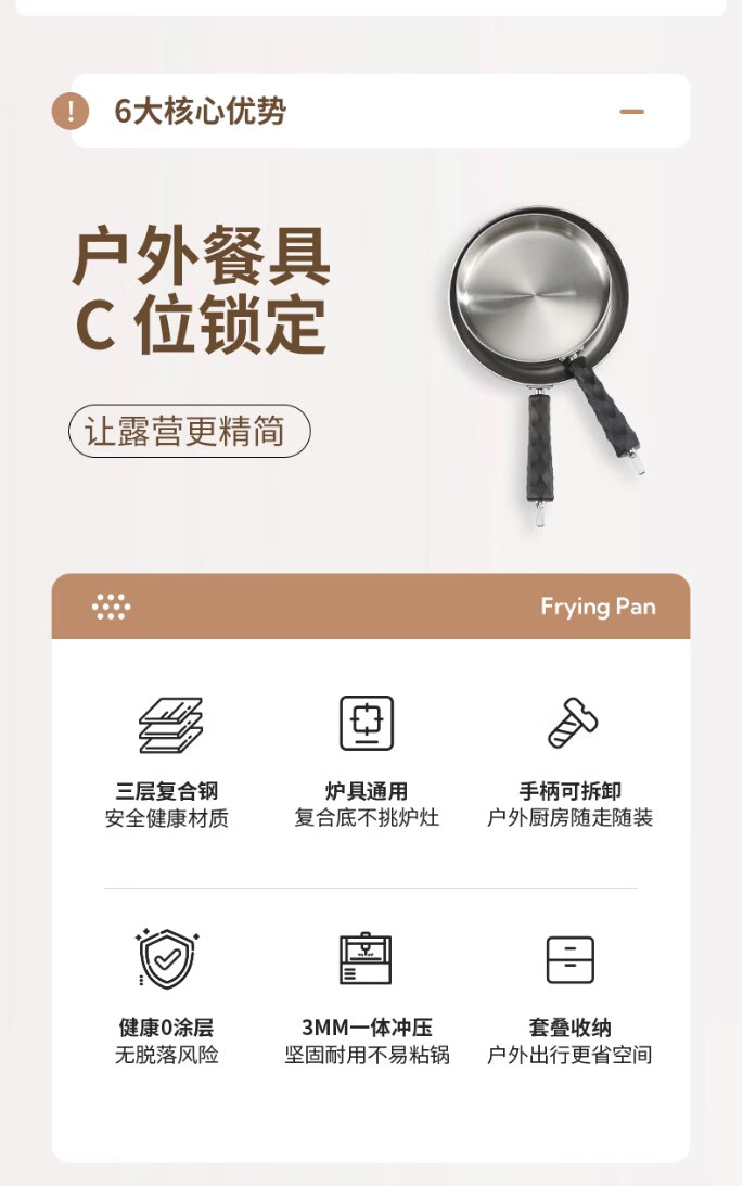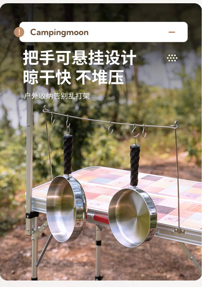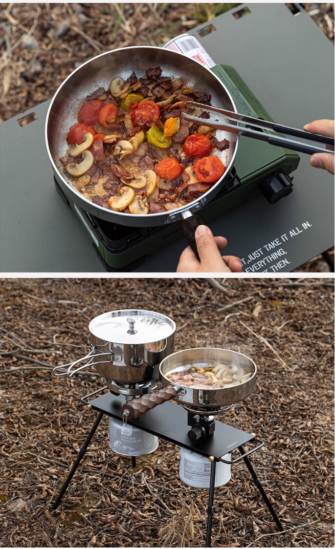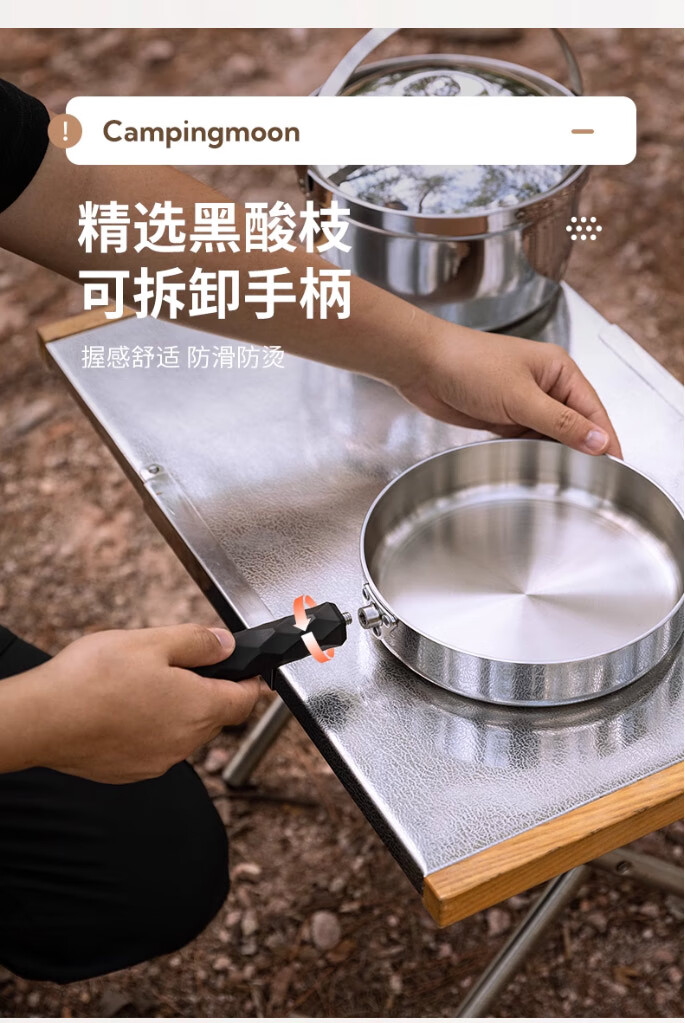 CAMPINGMOON柯曼不锈钢平底锅可卸手柄户外无涂层煎盘 电磁炉通用煎煮锅CC-19 【CC-23】大号煎盘