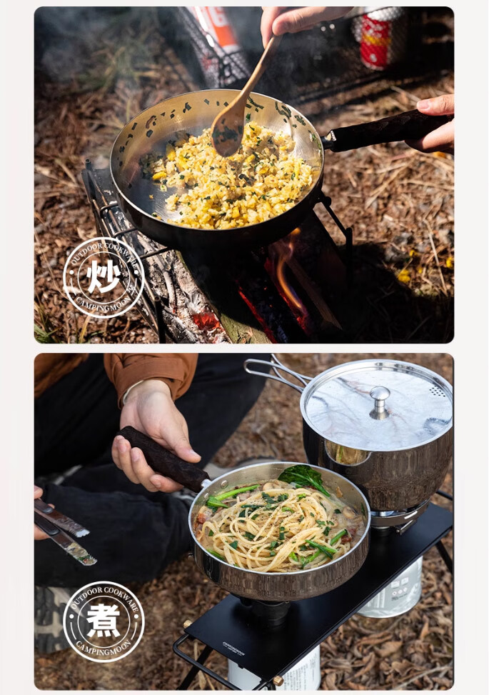 柯曼CAMPINGMOON6人不锈钢锅轻便16件套野餐锅户外煎炒煮炖电磁炉燃气灶通用 MC-210(6人套锅)