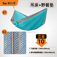 旅行家飞象吊床户外露营出口加大加宽双人三人轻便公园休闲室内外秋千 蓝/灰+梦幻奇遇野餐垫 吊床(300*200cm)