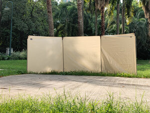 物流很快,打开试用了一下,收纳起来很小,很方便带出去,挡风效果很好,高度非常适合,质量很好,颜值高,面料比较厚实,做工精细。后期再追评!