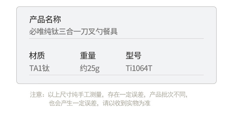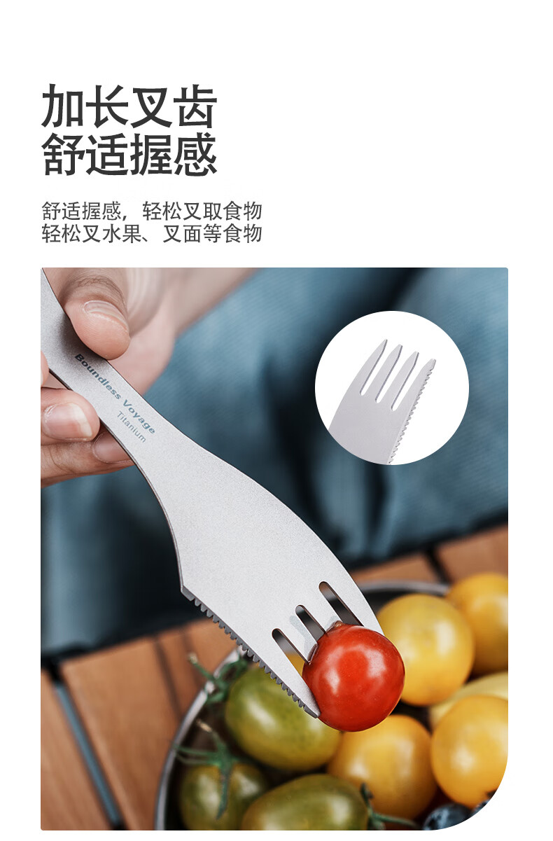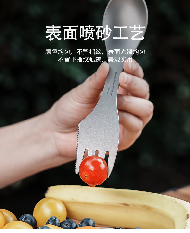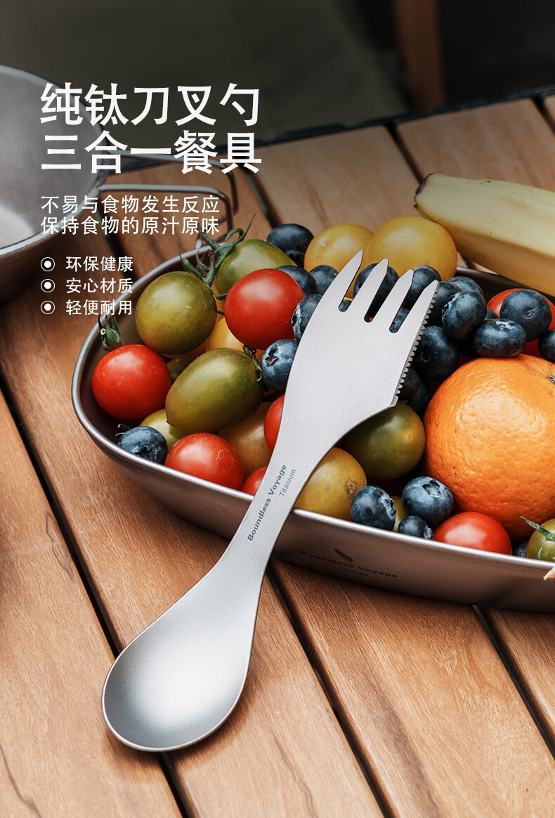 Ti artisan钛工匠户外钛勺钛餐具纯钛多功能刀叉勺三合一组合装野餐野炊装备 纯钛三合一叉勺