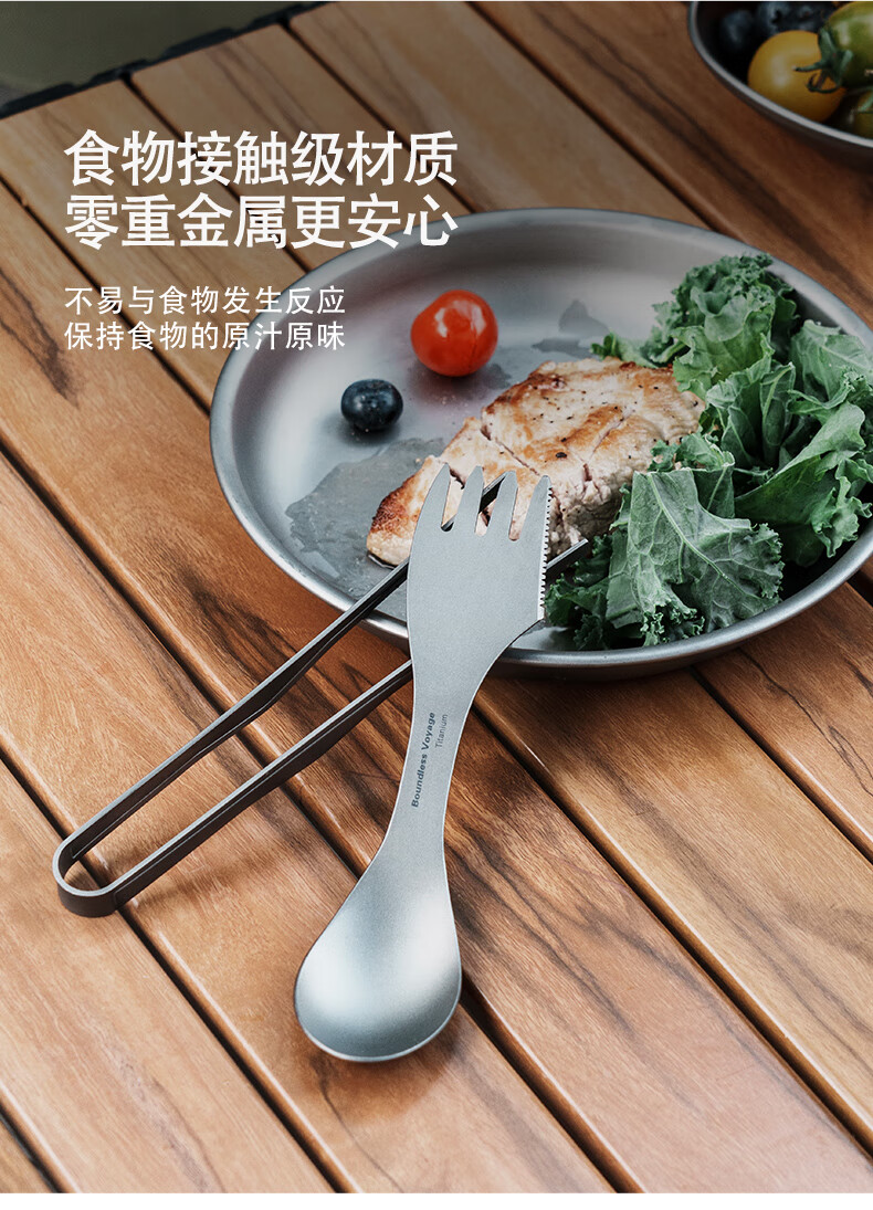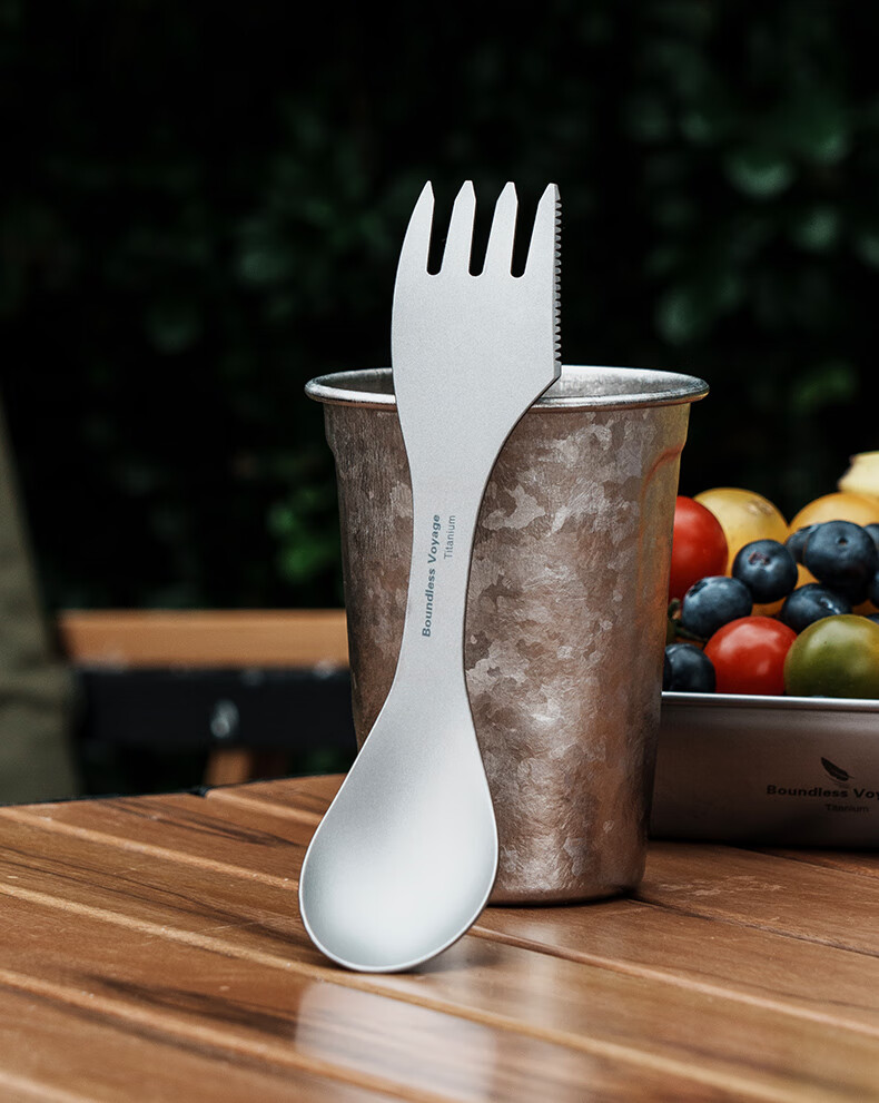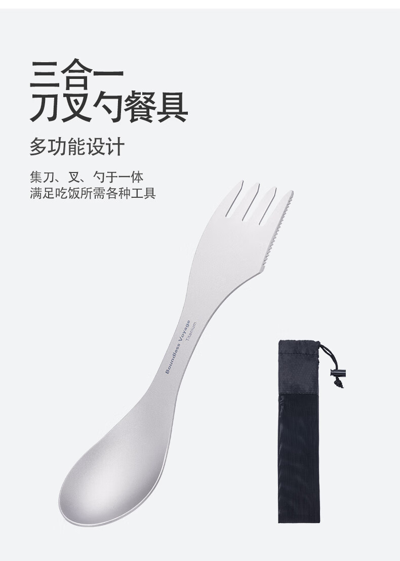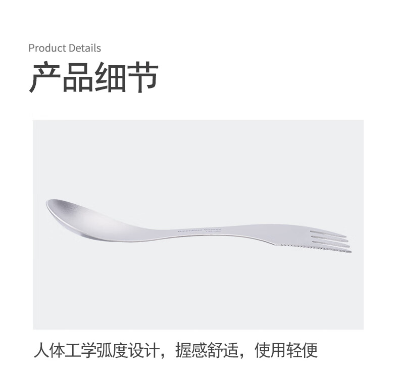 必唯(BOUNDLESS VOYAGE) 纯钛汤勺户外勺子多功能餐具便携饭勺叉勺调羹露营用品野营野餐 Ti1064T 钛色