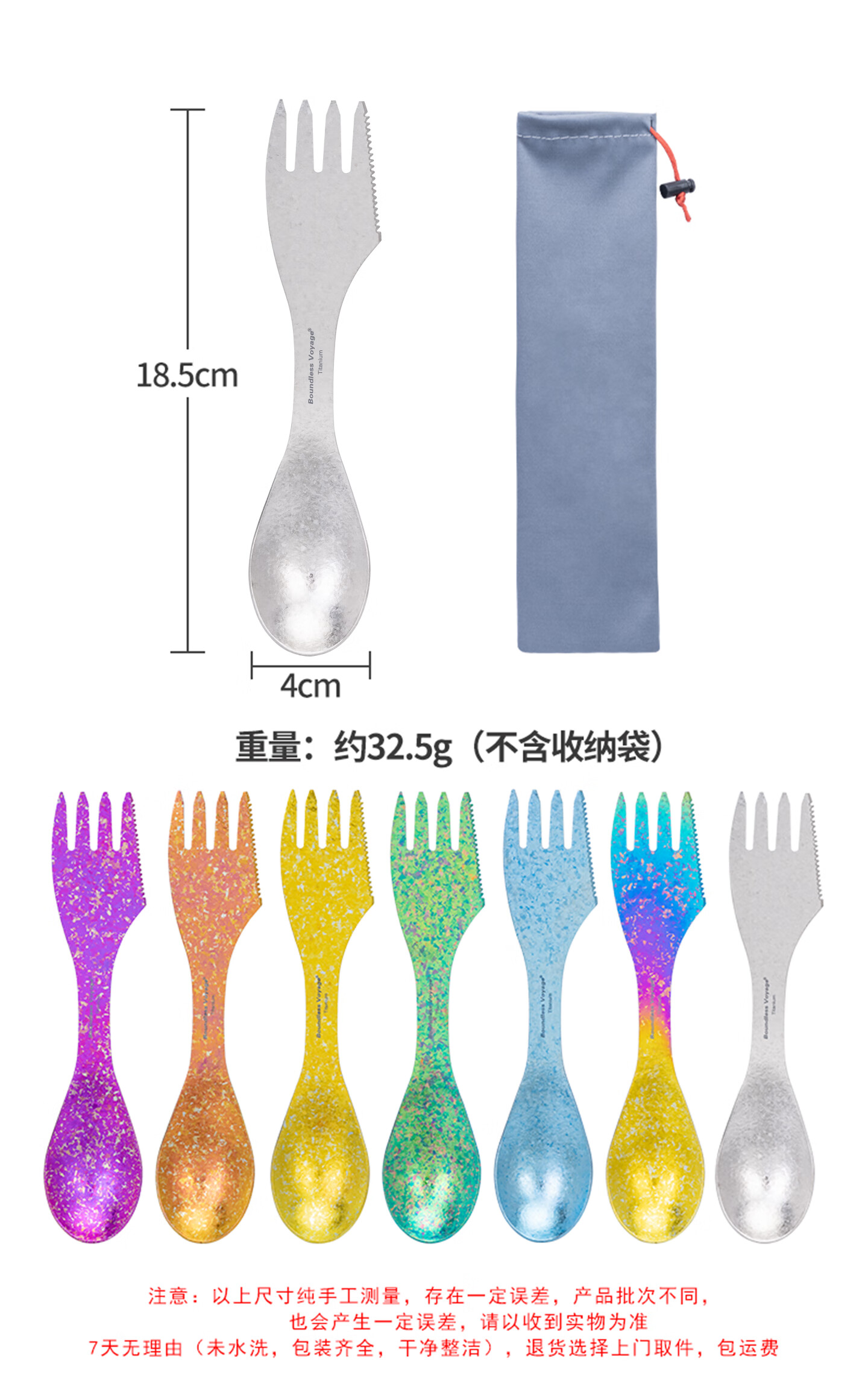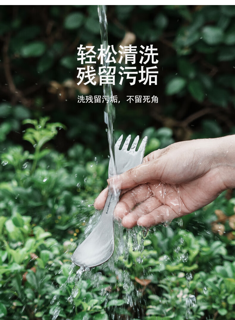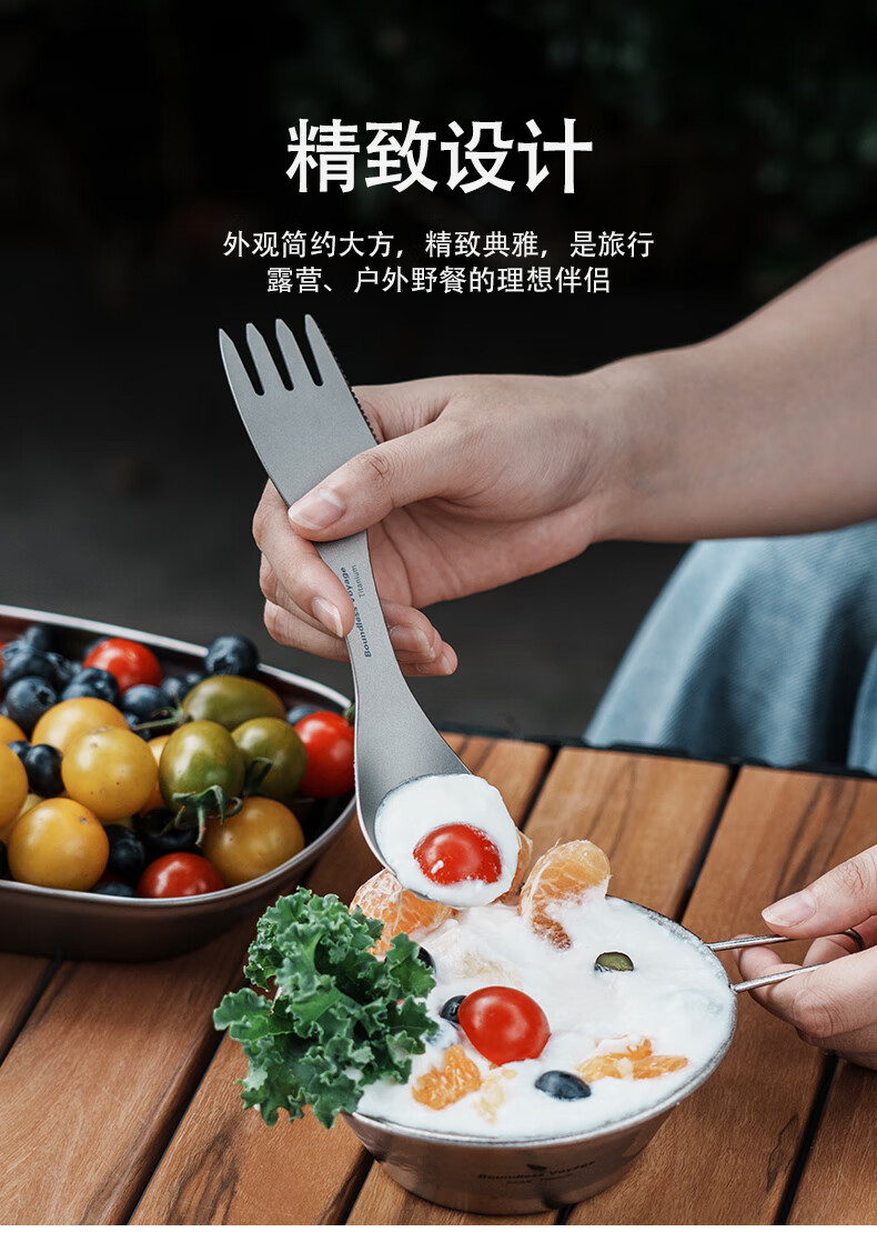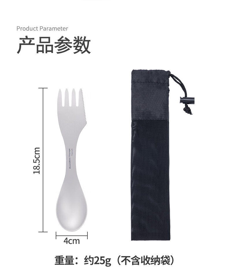 必唯(BOUNDLESS VOYAGE) 纯钛汤勺户外勺子多功能餐具便携饭勺叉勺调羹露营用品野营野餐 Ti1064T 钛色