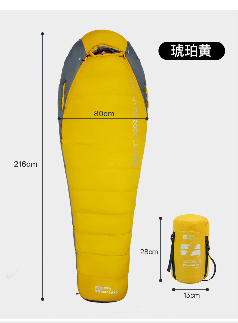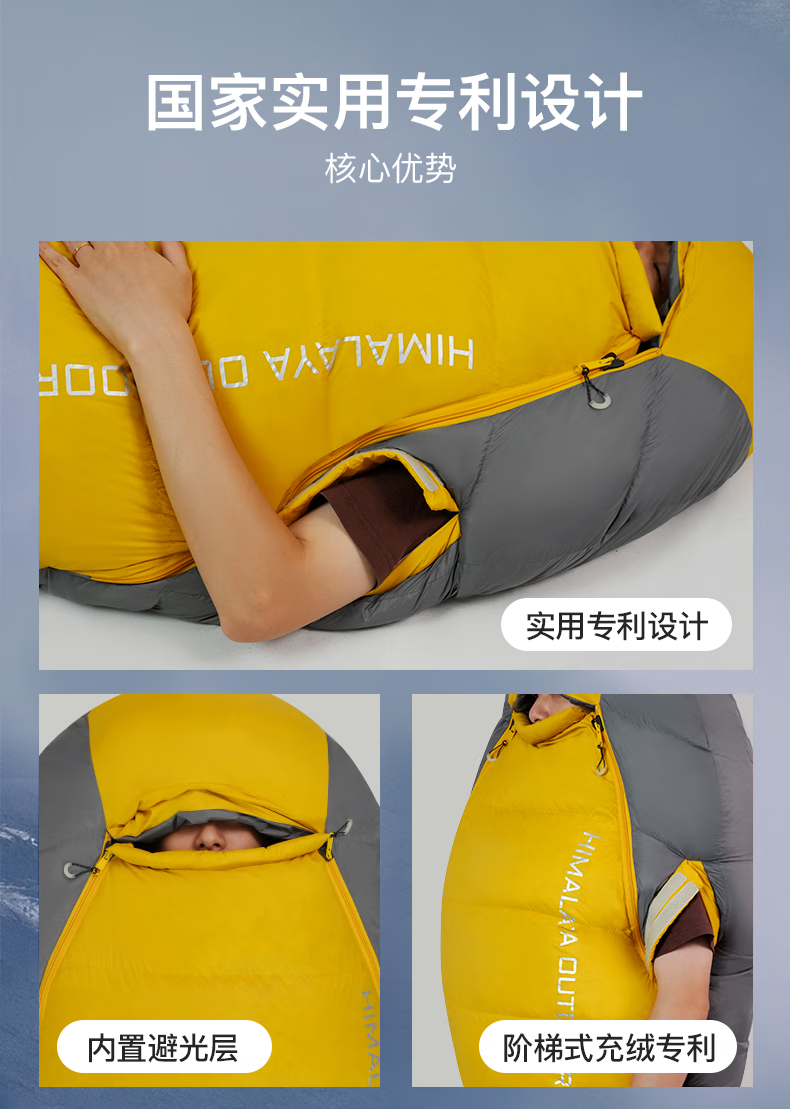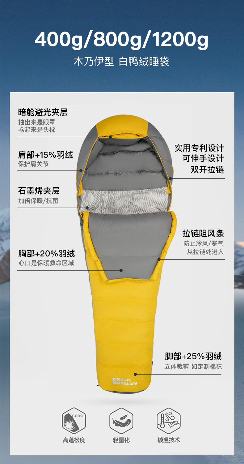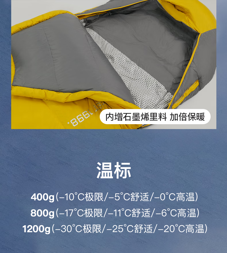 喜马拉雅羽绒睡袋轻量化成人户外露营石墨烯抗寒加厚保暖木乃伊睡袋 石墨烯800【新标准/保暖】蓝
