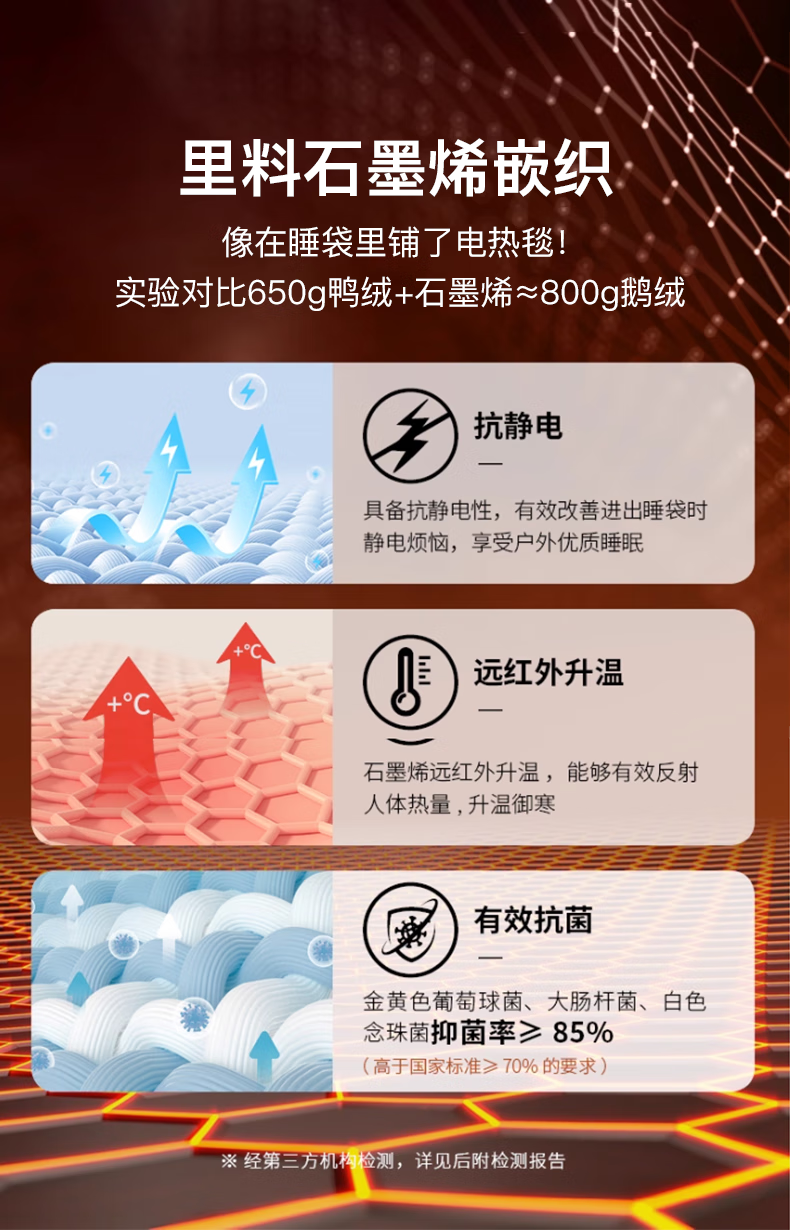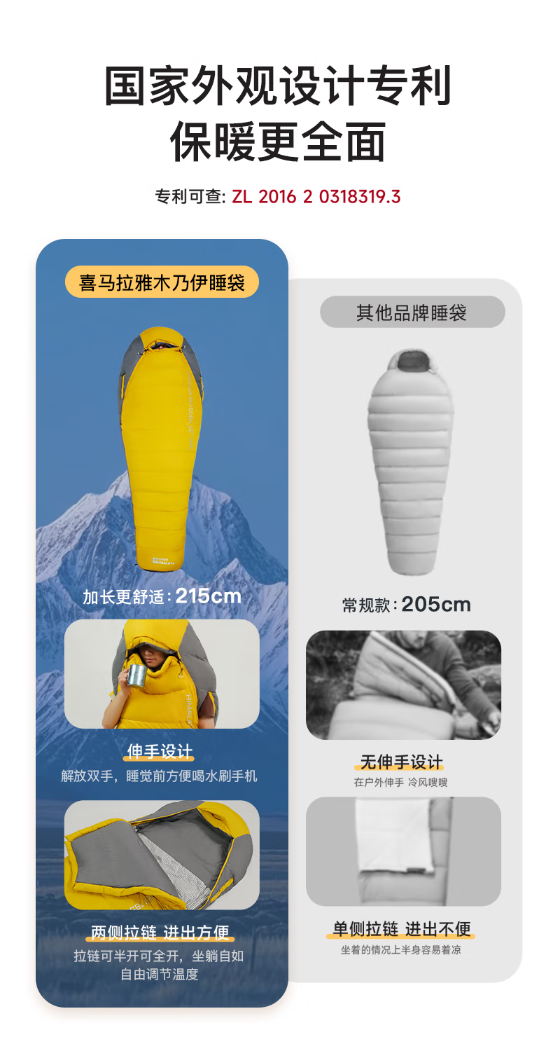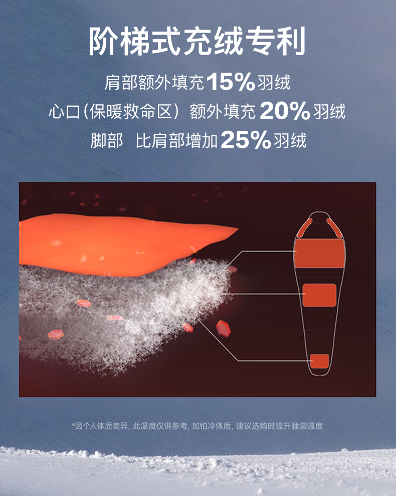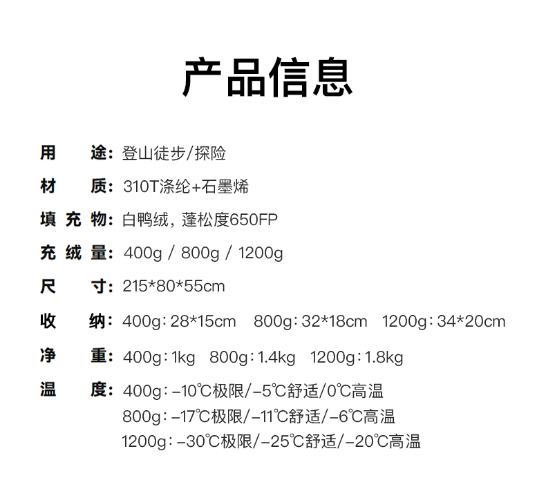 喜马拉雅羽绒睡袋轻量化成人户外露营石墨烯抗寒加厚保暖木乃伊睡袋 石墨烯800【新标准/保暖】蓝