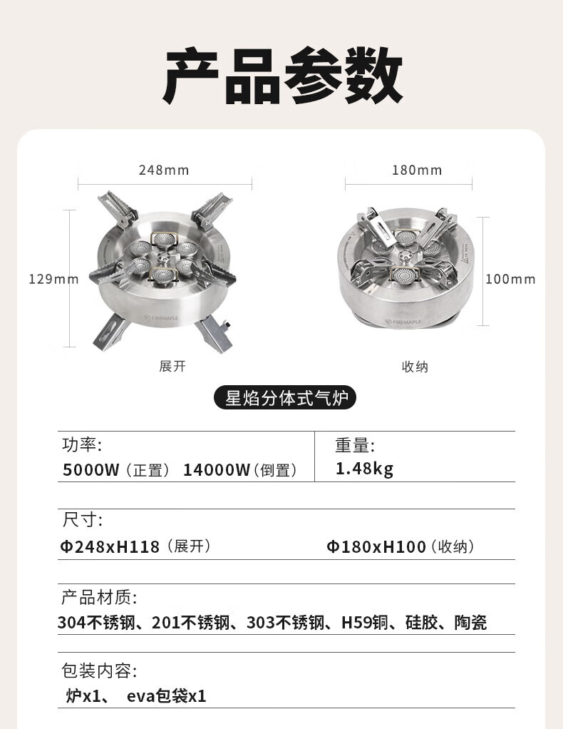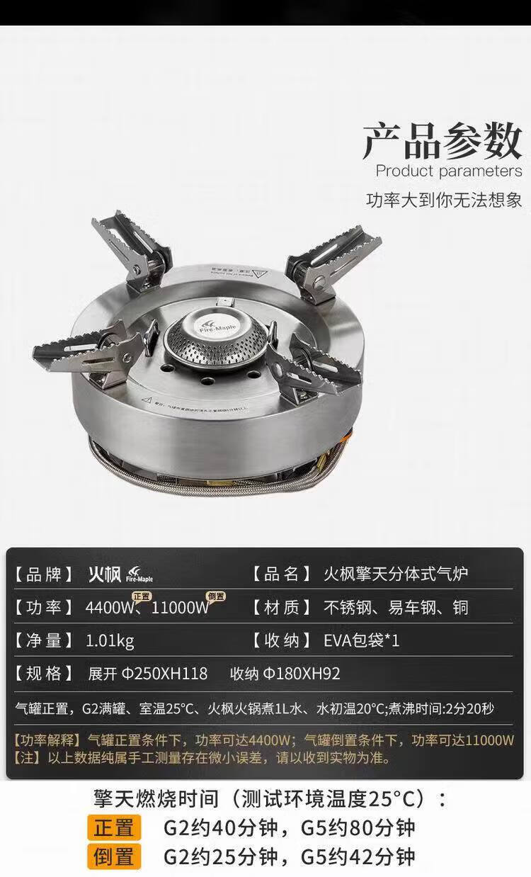 火枫(FIRE-MAPLE) 擎天分体气炉户外双预热管高海拔大功率炉具猛火炉头燃气灶 擎天分体式大气炉(附收纳包)