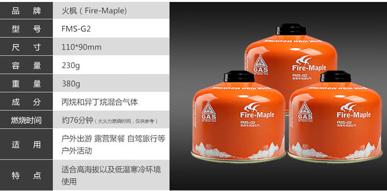 火枫(FIRE-MAPLE)户外扁气罐防爆丁烷液化气分体式炉头气罐高山高海拔燃气罐便携 擎天+450g*2