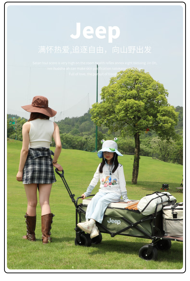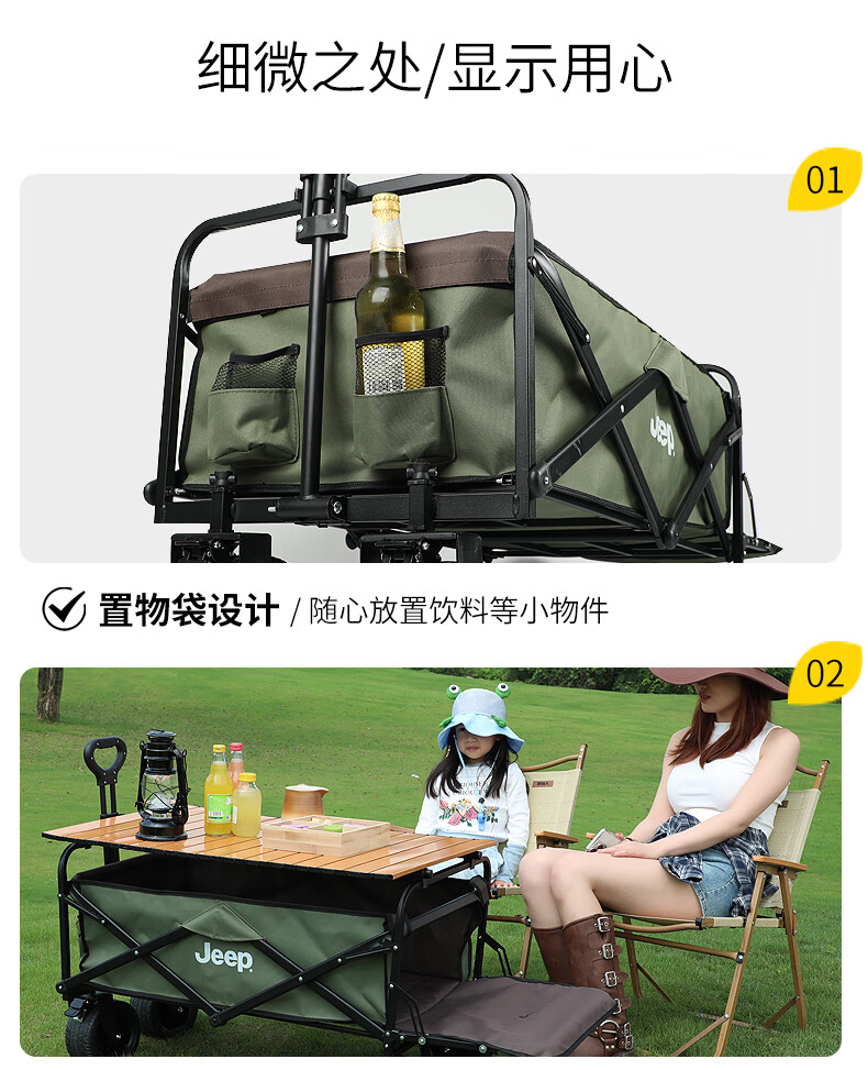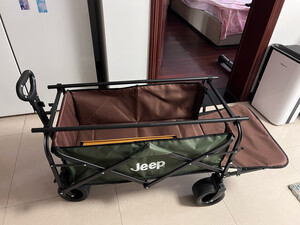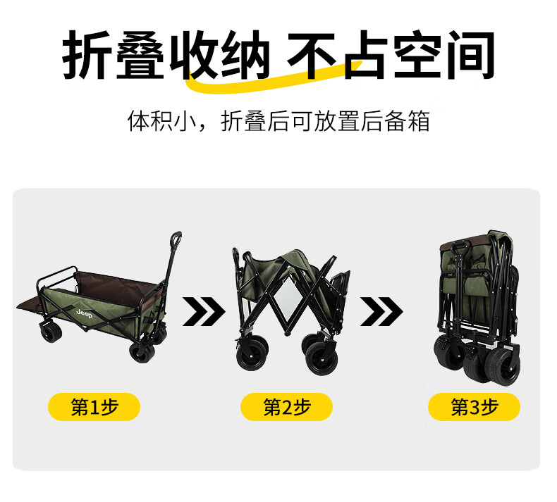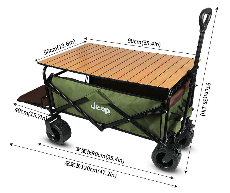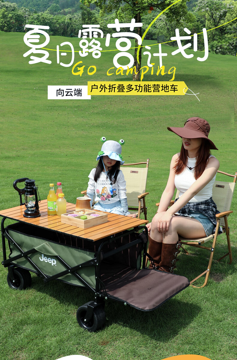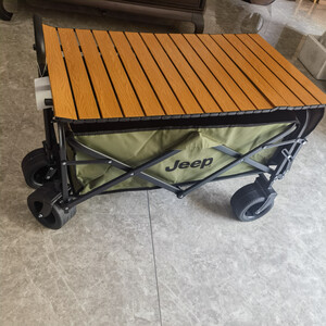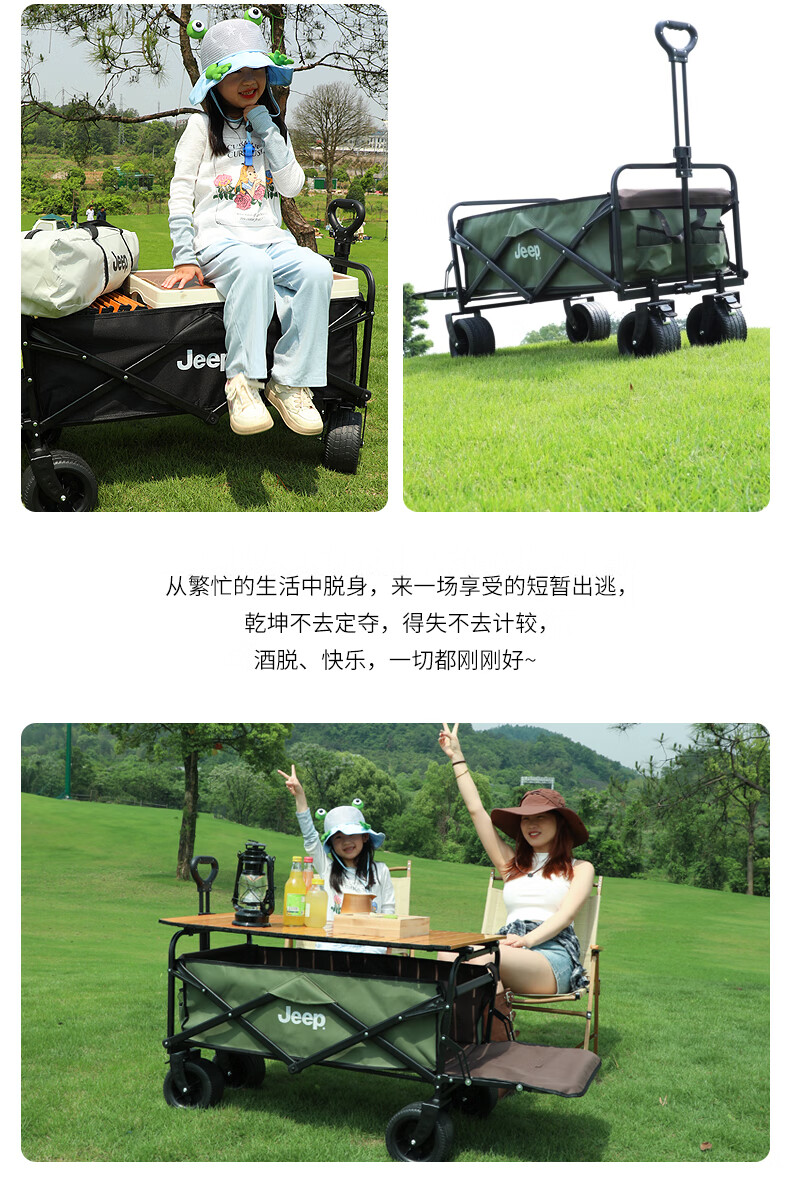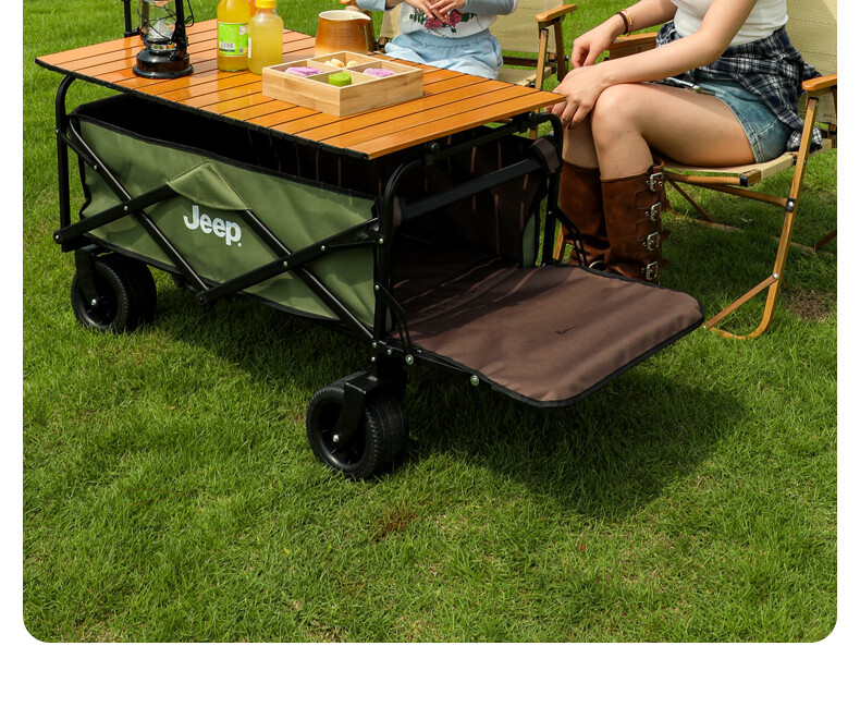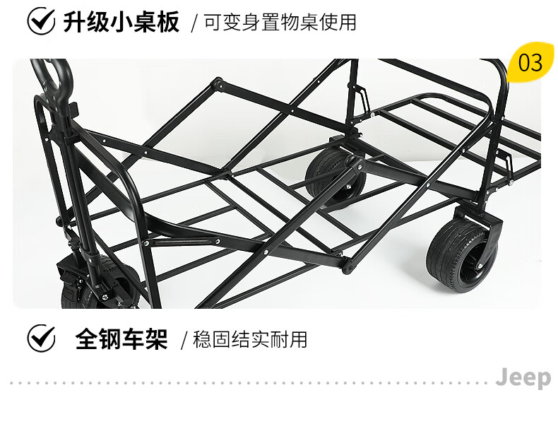 JEEP/吉普露营推车推拉一体户外野营手推车摆摊折叠拉快递便携 【翻斗款】卡其色大号宽轮+桌板