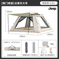 JEEP 帐篷户外折叠便捷式天幕一体自动露营防雨野外装备全套 云雾灰【2门2窗】5-8人款/门厅款 帐篷【标配门撑杆+地钉+防风绳】