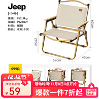 JEEP 户外折叠椅露营椅子户外椅子折叠便携露营椅沙滩椅克米特椅 中号卡其色木纹碳钢款