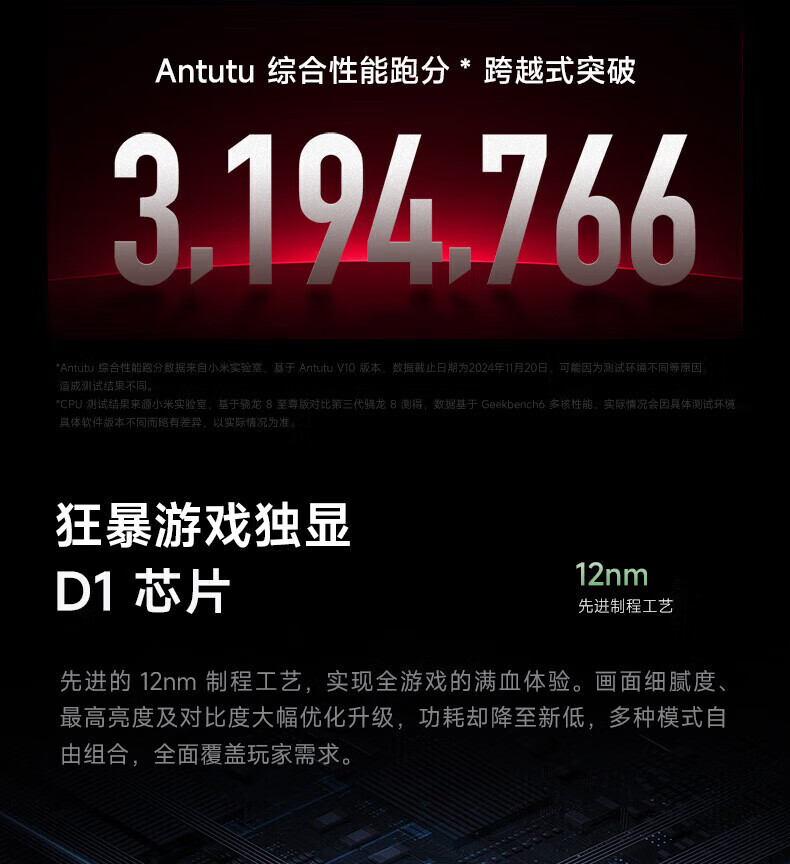 小米(MI)UI/小米 REDMI K80 Pro骁龙8大电池5G通手机直面游戏高刷机 玄夜黑 12GB+512GB