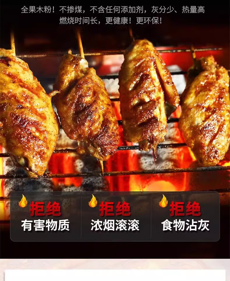 宝贝收到,包装很结实,打开后木炭质量很好,颗粒均匀,燃烧时间挺长的,火候也稳定。周末和朋友户外烧烤,用起来很方便,火候控制得刚刚好,烤出来的食物特别香。火锅用了几次,温暖每一刻,体验感很棒。性价比高。