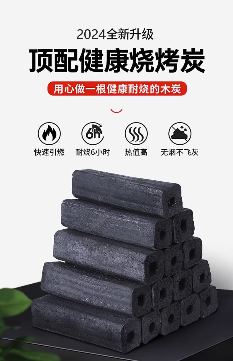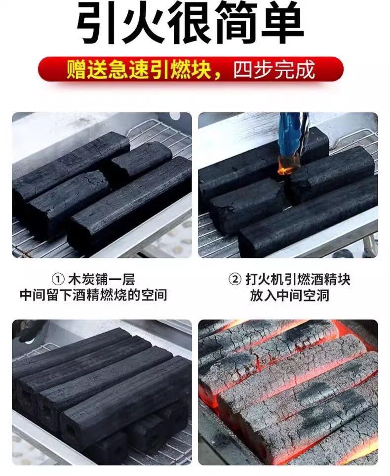 烧烤碳高温易燃耐烧木炭烧烤肉店批发机制碳户外六角木炭 10斤【赠引燃块*2+炭夹*1】