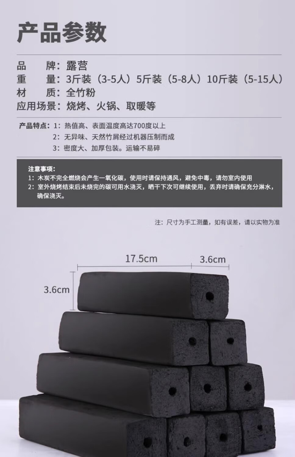 户外烧烤碳10斤烧烤木炭取暖木碳火锅炭烧烤木炭竹炭取暖 5斤(±0.3)+2引燃块+炭夹