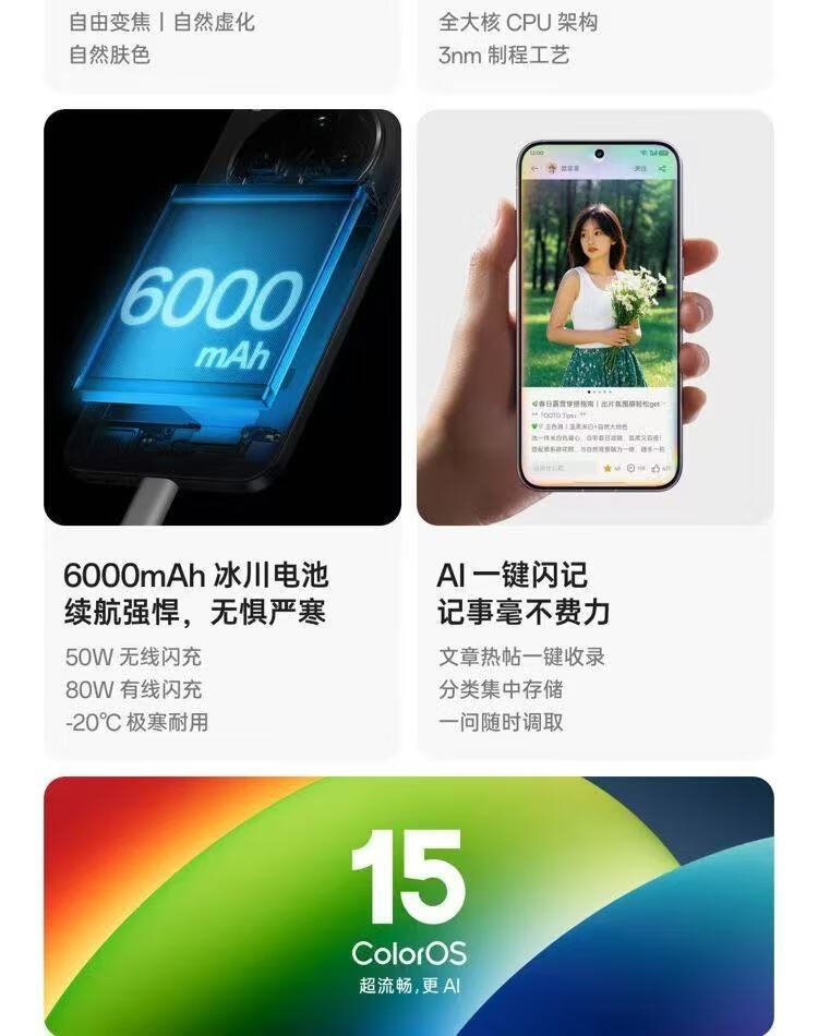 OPPO Reno15 16GB+512GB 星光蝴蝶结 12期分期可选 5G手机新品 K13x 超流畅ColorOS 15 IP69 防尘防水 【曜黑】8GB+128GB 标配版