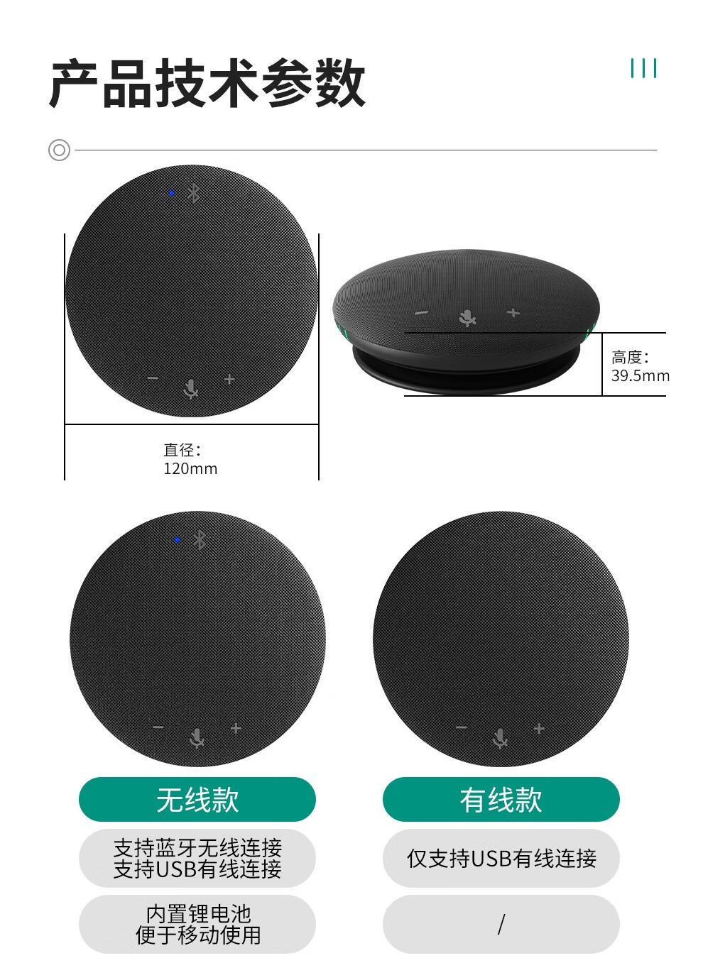 华畅视讯视频会议全向麦克风USB蓝牙无线阵列拾音器ZOOM腾讯会议设备级联一拖二三四5.8G桌面扬声器 HC-M10U(USB有线+无音箱)