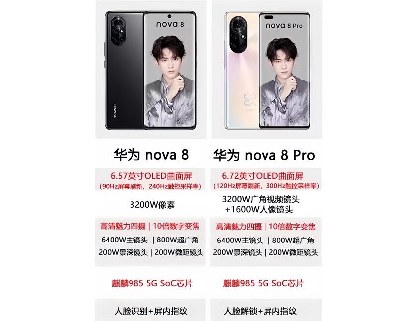 华为(HUAWEI)华为nova8 华为nova8pro 华为手机 nova8 Pro95 nova8 亮黑色 8G+128G(赠送购机)