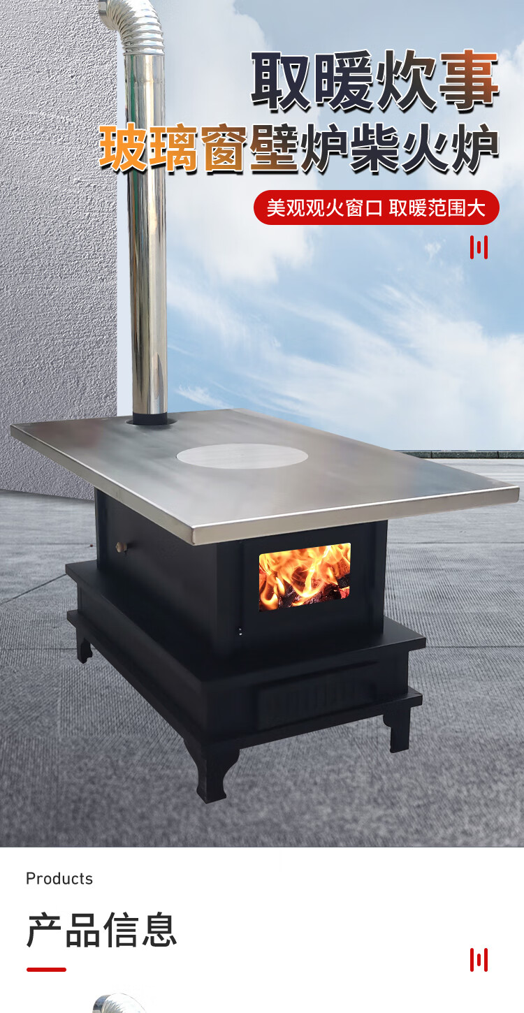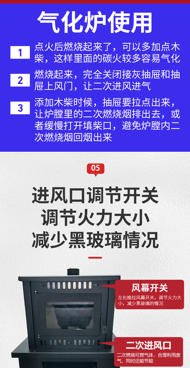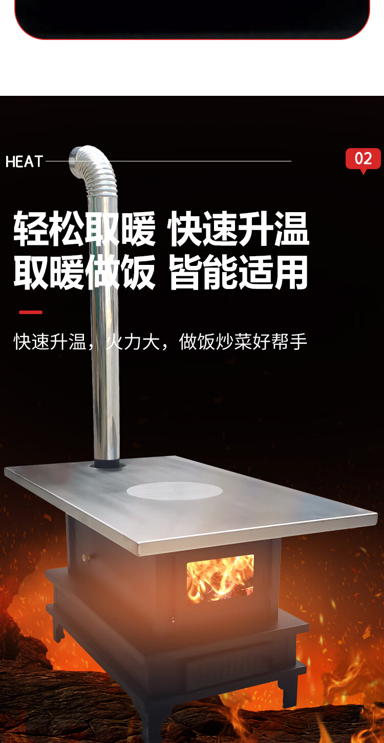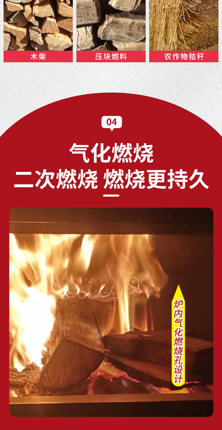 农村柴火炉 家用冬季木煤气取暖炉烧木柴气化炉多功能柴火灶烤火炉 烧柴-配不锈钢烟囱