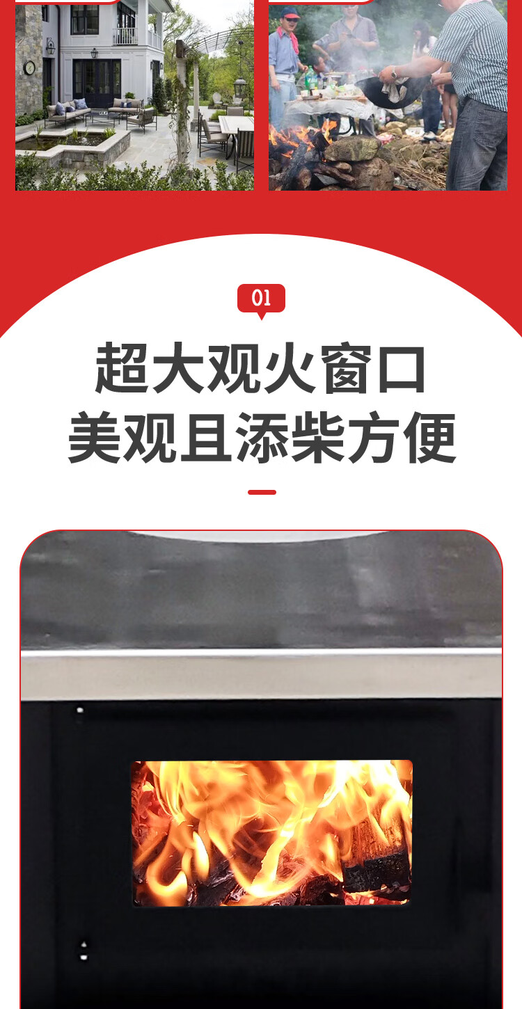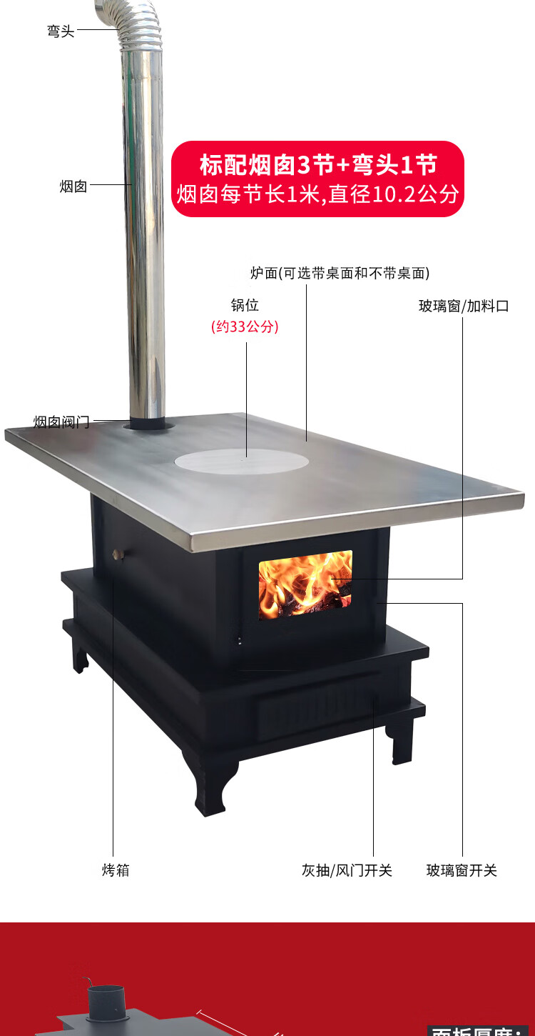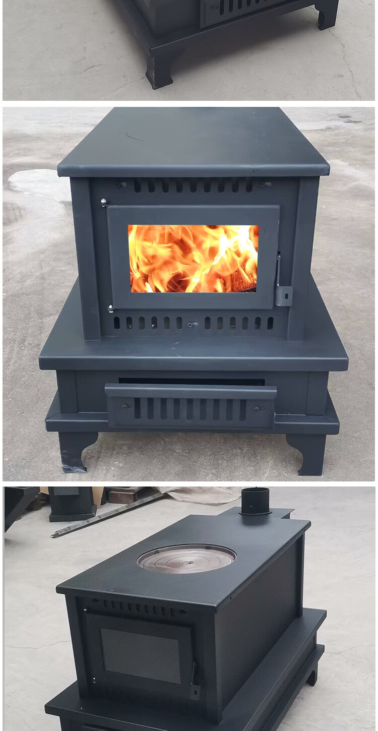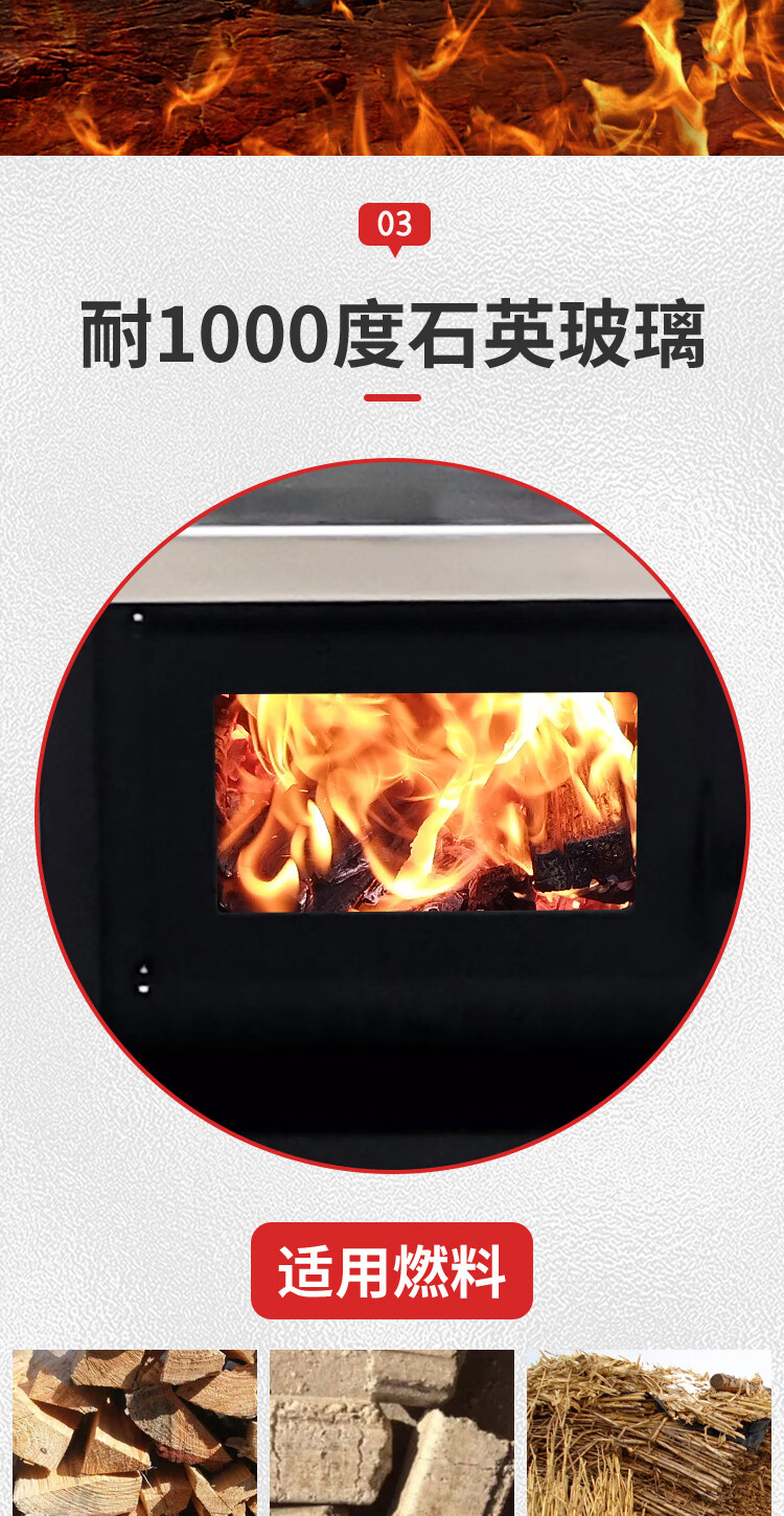 农村柴火炉 家用冬季木煤气取暖炉烧木柴气化炉多功能柴火灶烤火炉 烧柴-配不锈钢烟囱