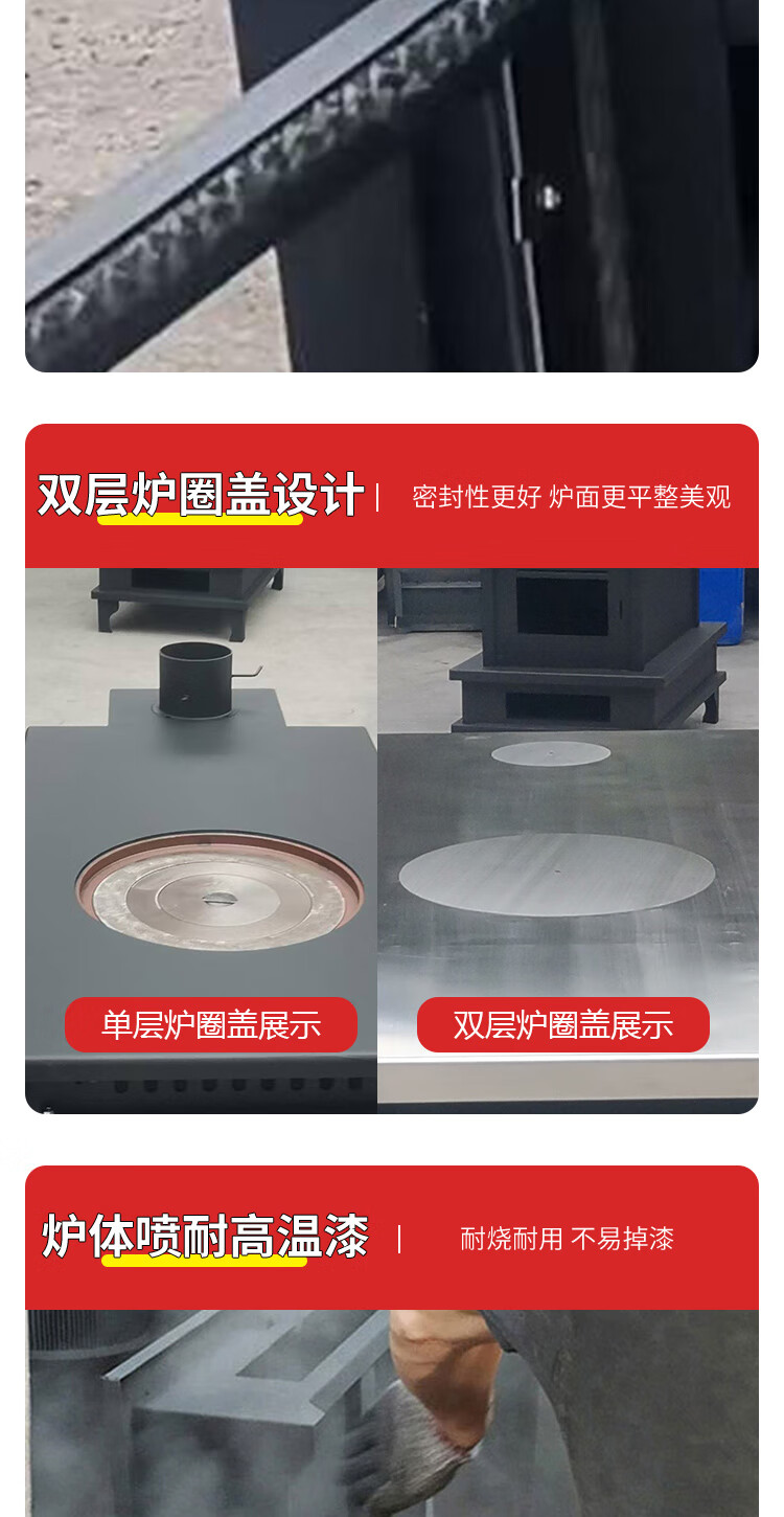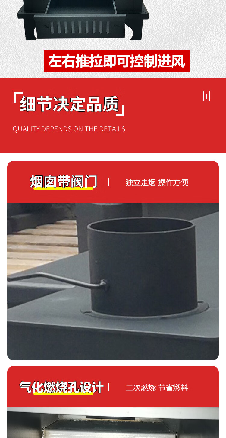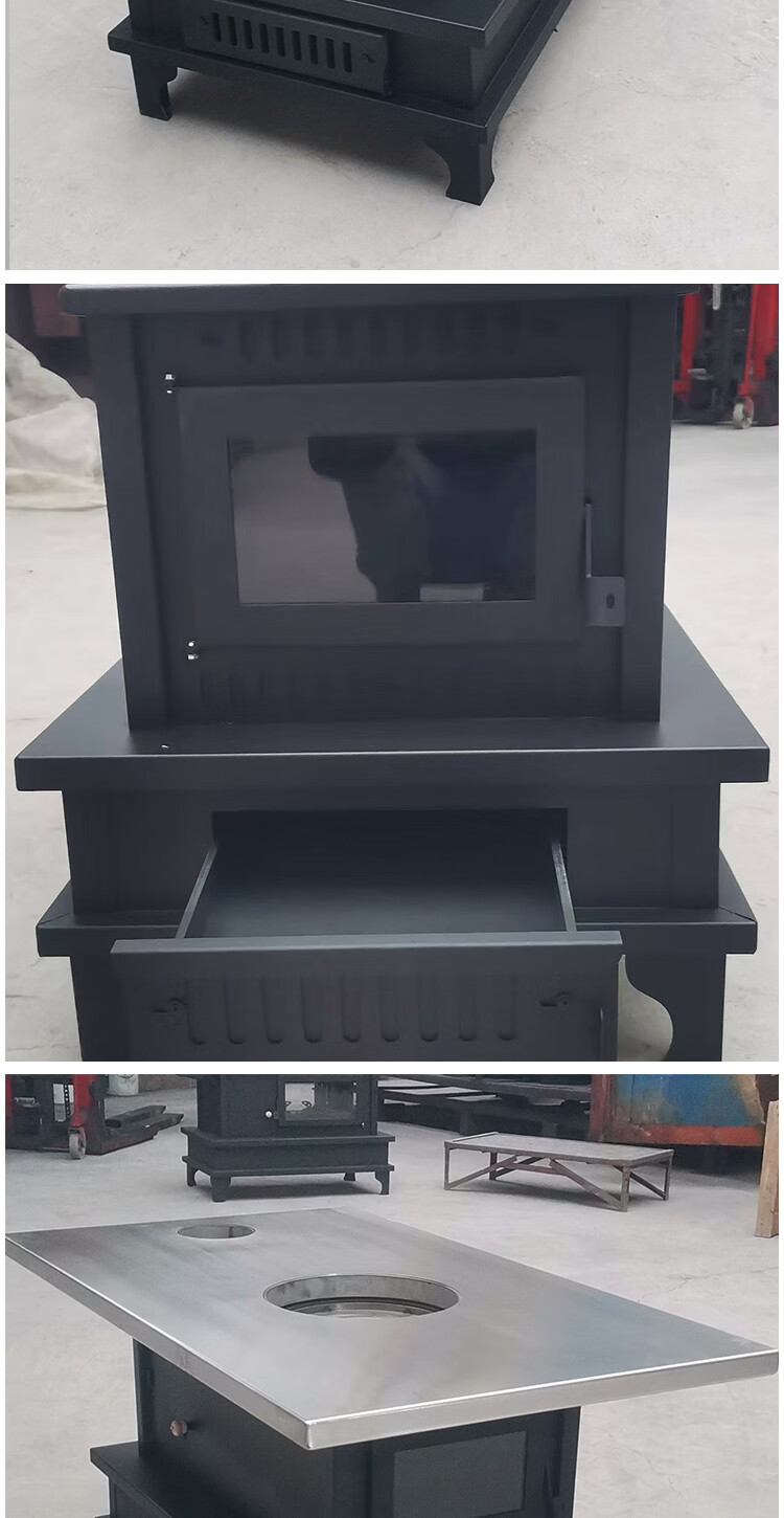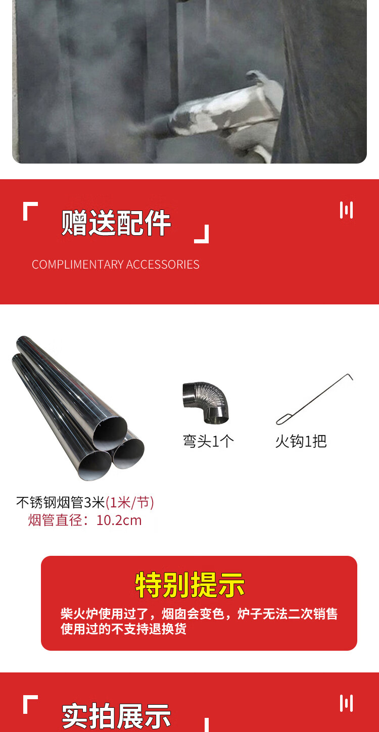 农村柴火炉 家用冬季木煤气取暖炉烧木柴气化炉多功能柴火灶烤火炉 烧柴-配不锈钢烟囱