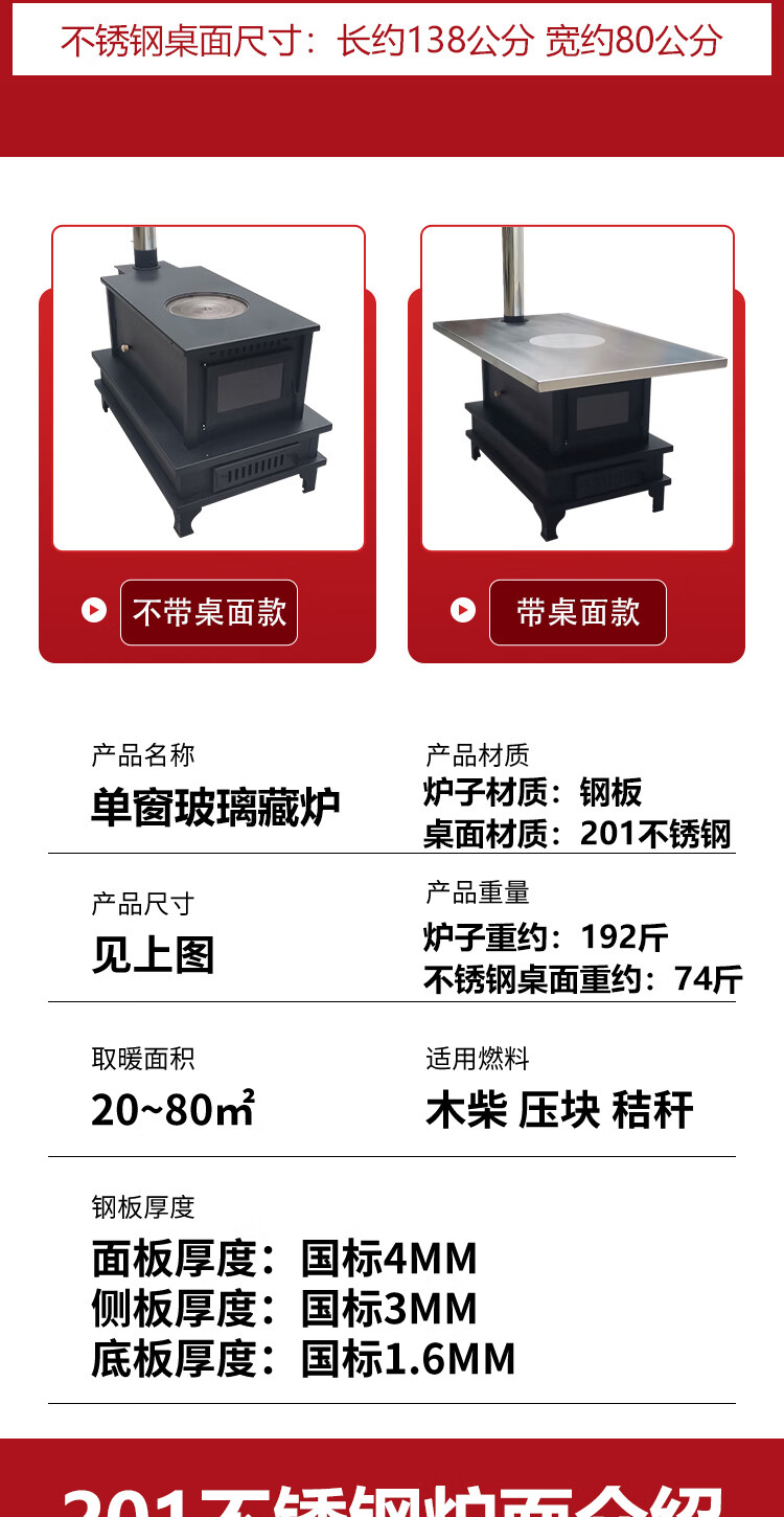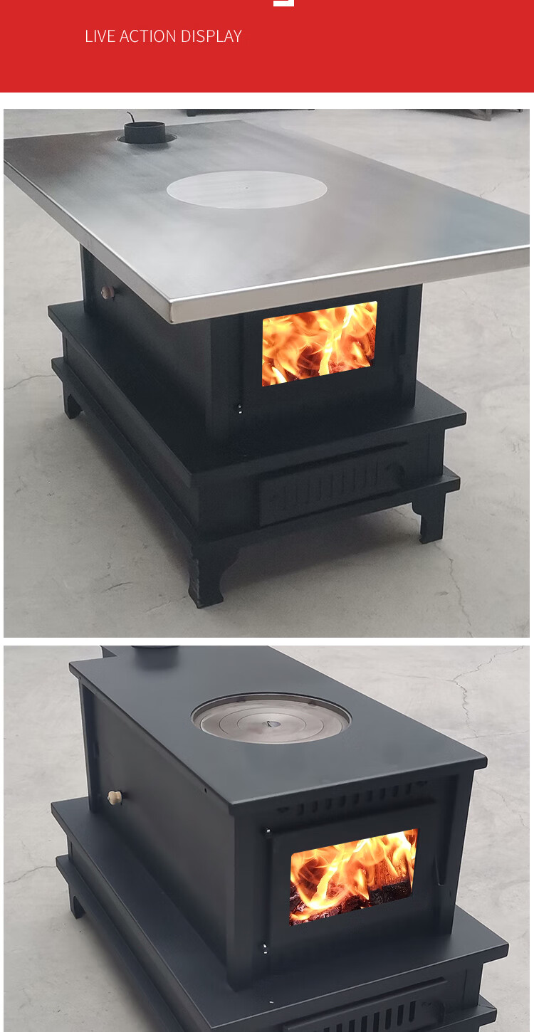 铁匠哥藏式柴火炉茶几围炉煮茶烤火炉子家用不锈钢室内柴火灶取暖炉烧柴 单面玻璃款--带桌面