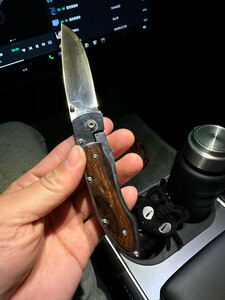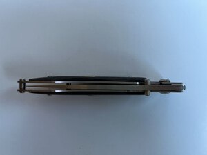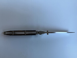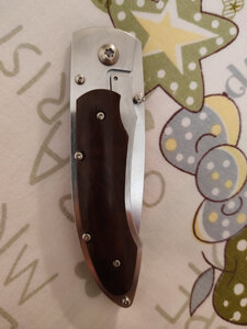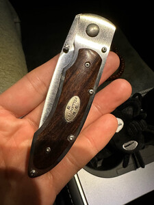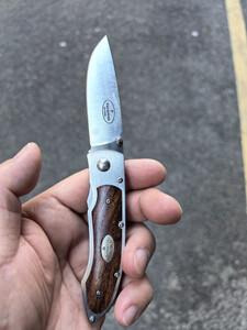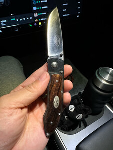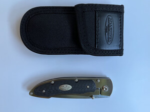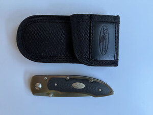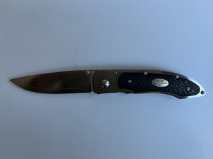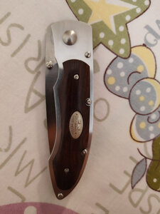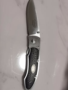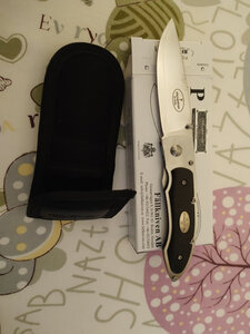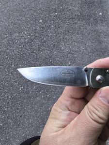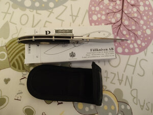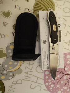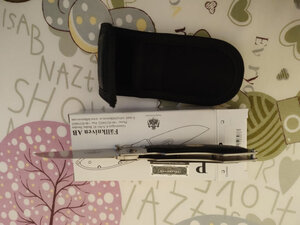 采用3G钢,瑞典原产。外包装盒挺朴素的,还有热塑缩封。内送装刀的尼龙布袋一个。刀刃锋利。刀鞘内弹性钢片对打开和收起均起巧妙的固定支撑作用(可见晒图细节)