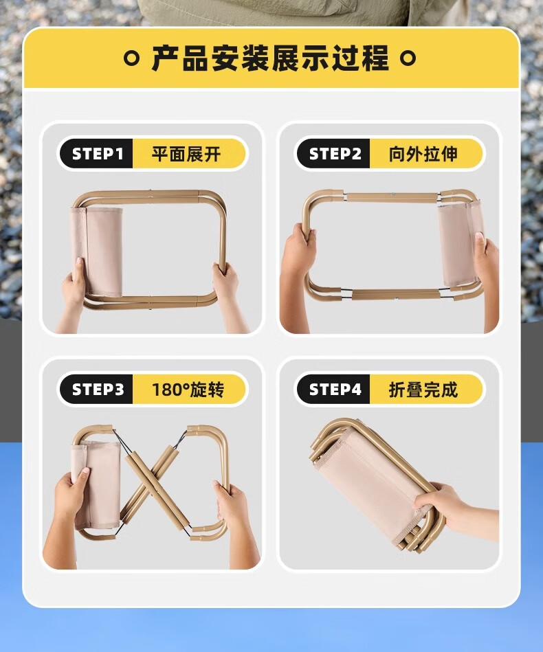物流很快,包装很好,折叠起来很小巧,方便存放和携带,内部有弹力拉绳,易于组装,而且组装很方便,部件插在一起即可,组合后的小马扎坐着很稳当