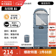 挪客Naturehike日暄信封带帽增温棉睡袋户外露营成人加厚可拼接 晚波蓝/HU250/常规款/左