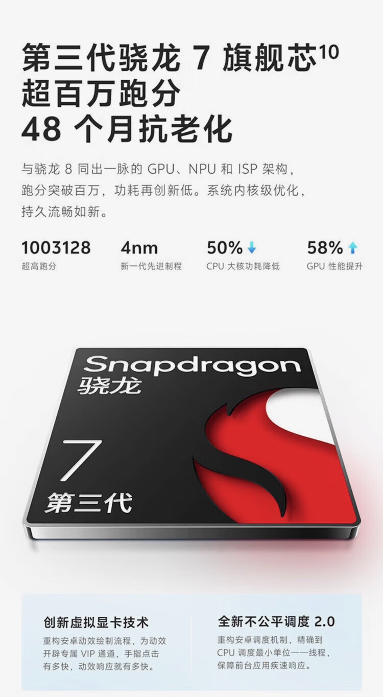 颜色很国风,烟雨江南的感觉,颜值我很满意,拍照很好看,处理器是骁龙 7gen3,日常重度使用+打游戏都OK的,轻薄+续航好+自拍好+人像好