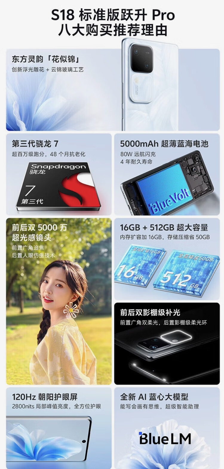 vivoS18 Pro 5G 旗舰芯片后置影棚级柔光拍照手机天玑9200+ 花似锦 16GB+512GB 单机+第三方品牌充电器+店保1年