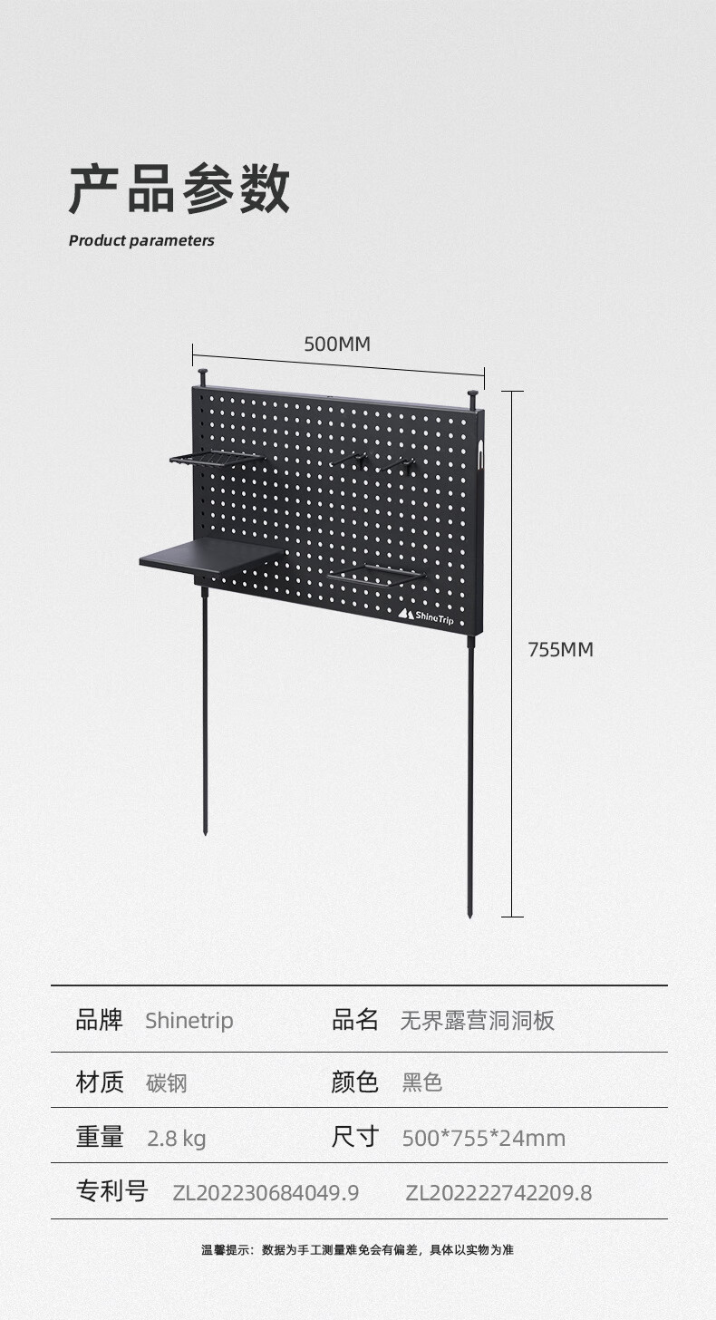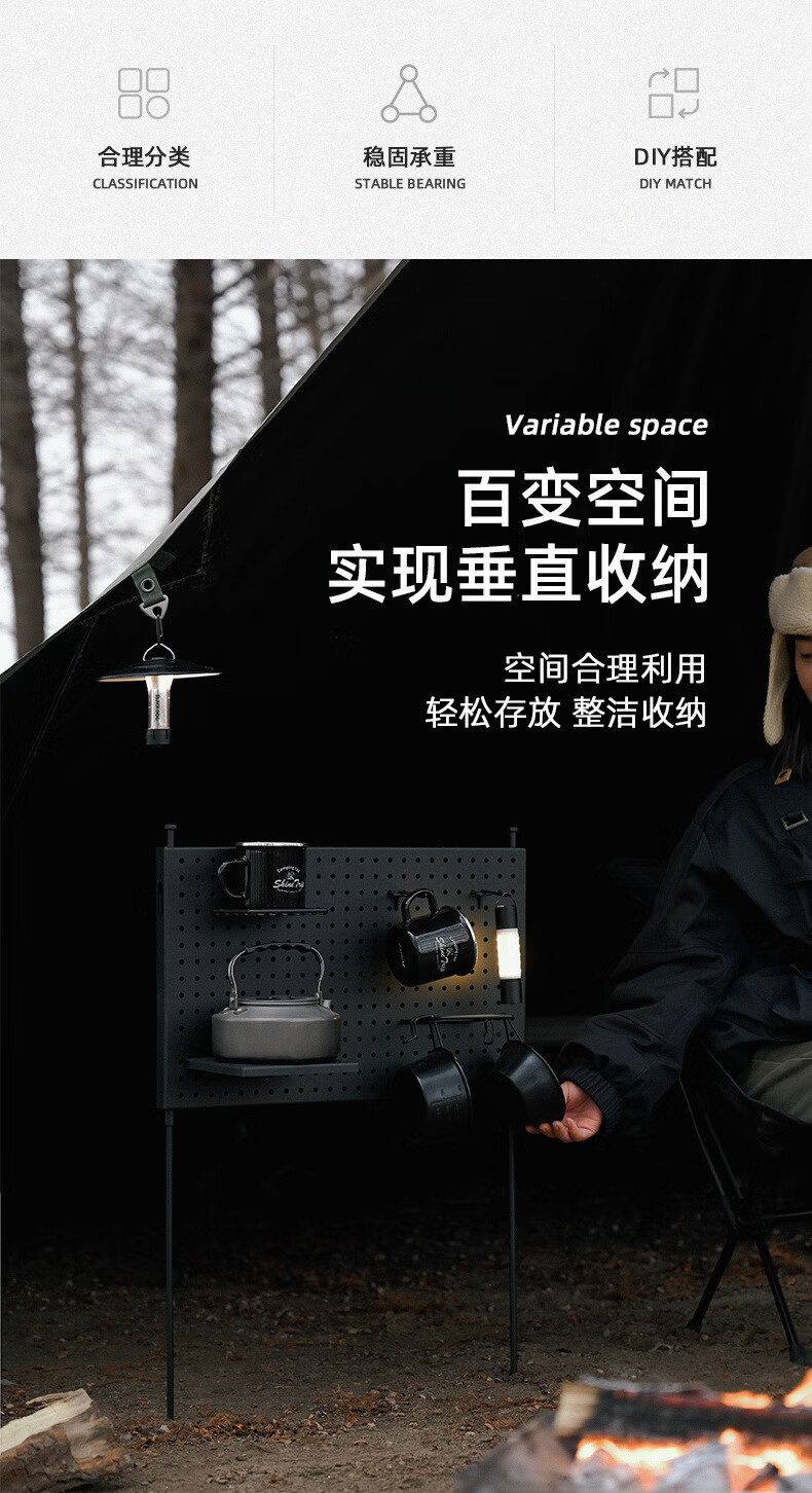 山趣户外露营置物洞洞板多功能餐具收纳置物架自由组合挂板展示架 无界洞洞板-送收纳包 500*755*24mm