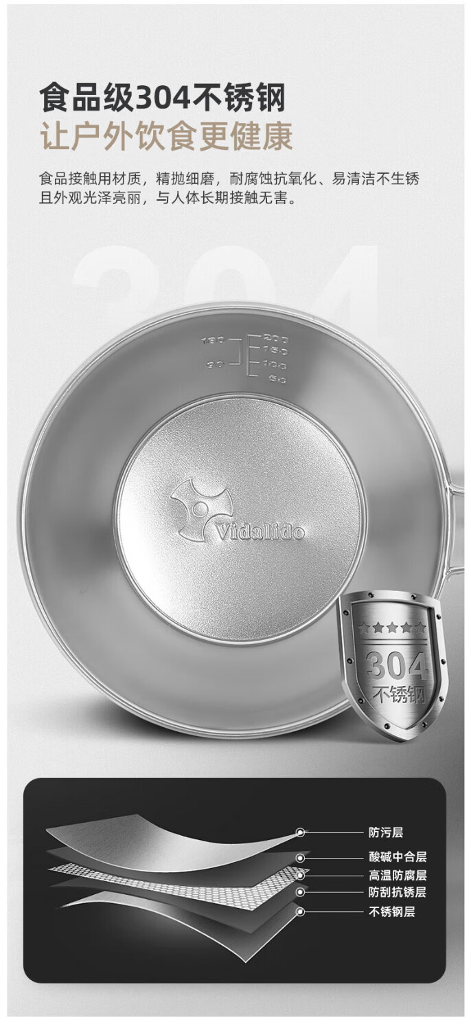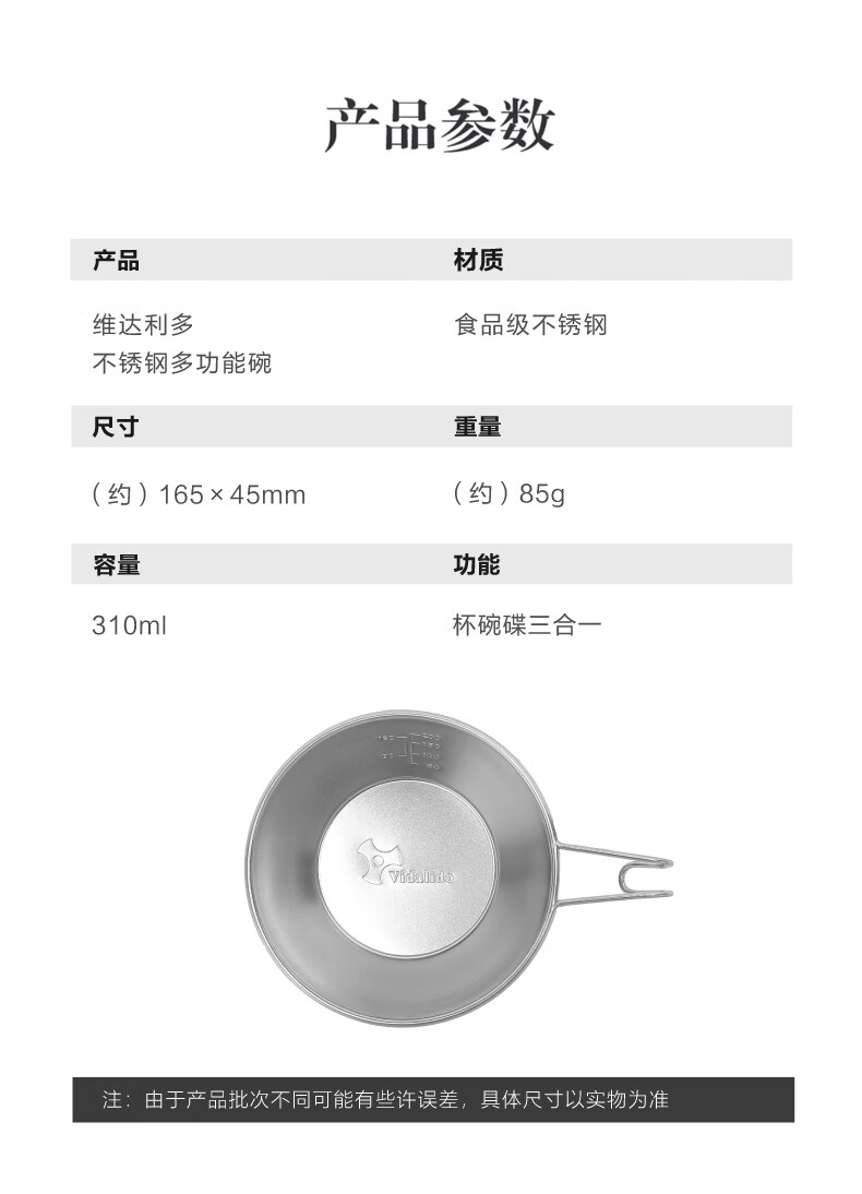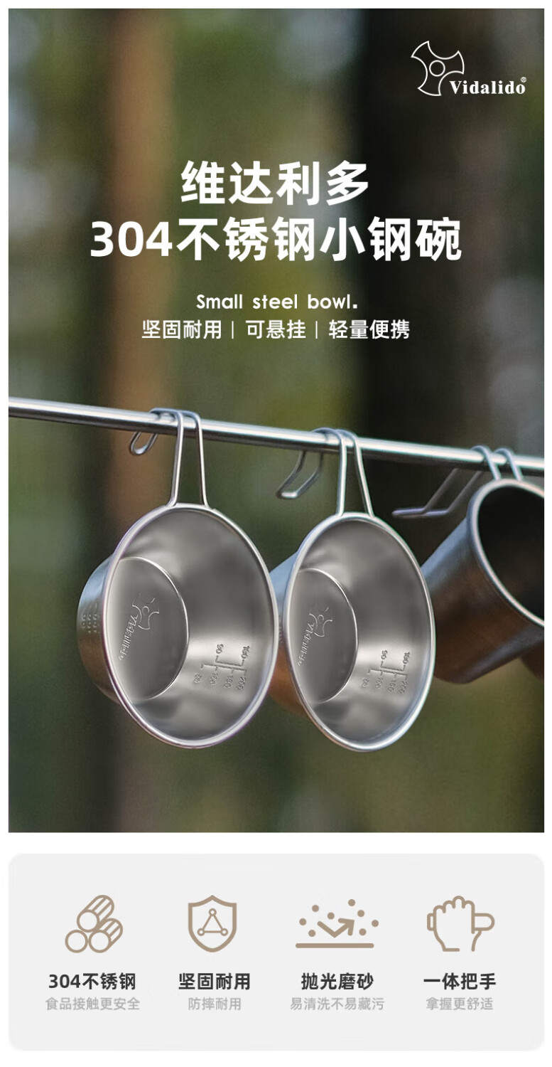 vidalido维达利多户外不锈钢雪拉碗食品级露营野餐登山烧烤便携把手碗碟 4碗套装+收纳包