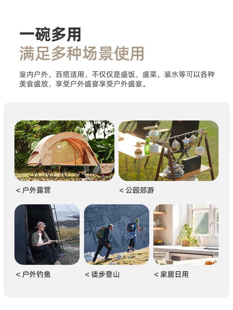 今天是户外露营吗?然后这个碗的话还是挺不错的,这个价格也可以,他清洗的话也比较方便,然后给他晒晒还是挺不错的。小朋友也可以用这个碗非常的不错哟。