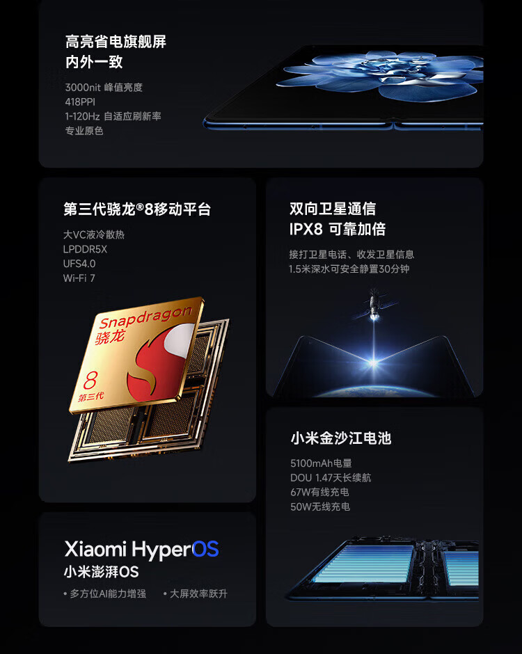 小米(MI)展机MIXFold4折叠屏 5G手机Fold3 徕卡光学卫星通信国行正品大屏 【MixFold4】黑色 16G+512G 赠运费险详情咨询客服