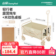 山扉露营车推车户外可折叠营地车儿童可躺野营小拖车野餐手推车 110L升级加厚款香槟金+桌板