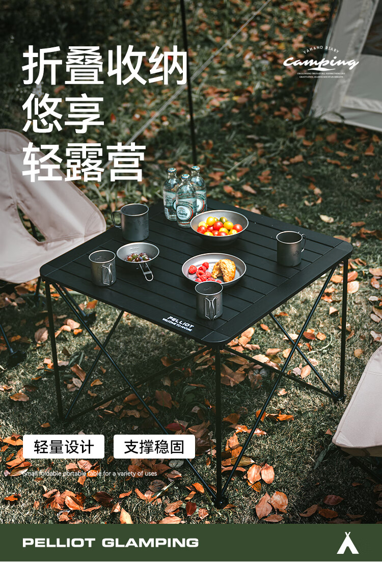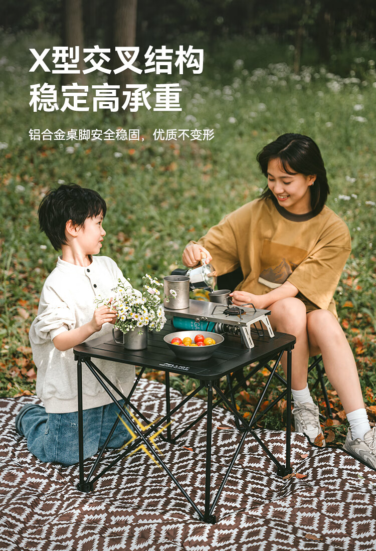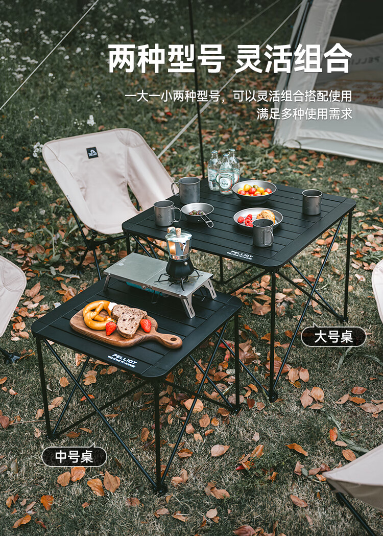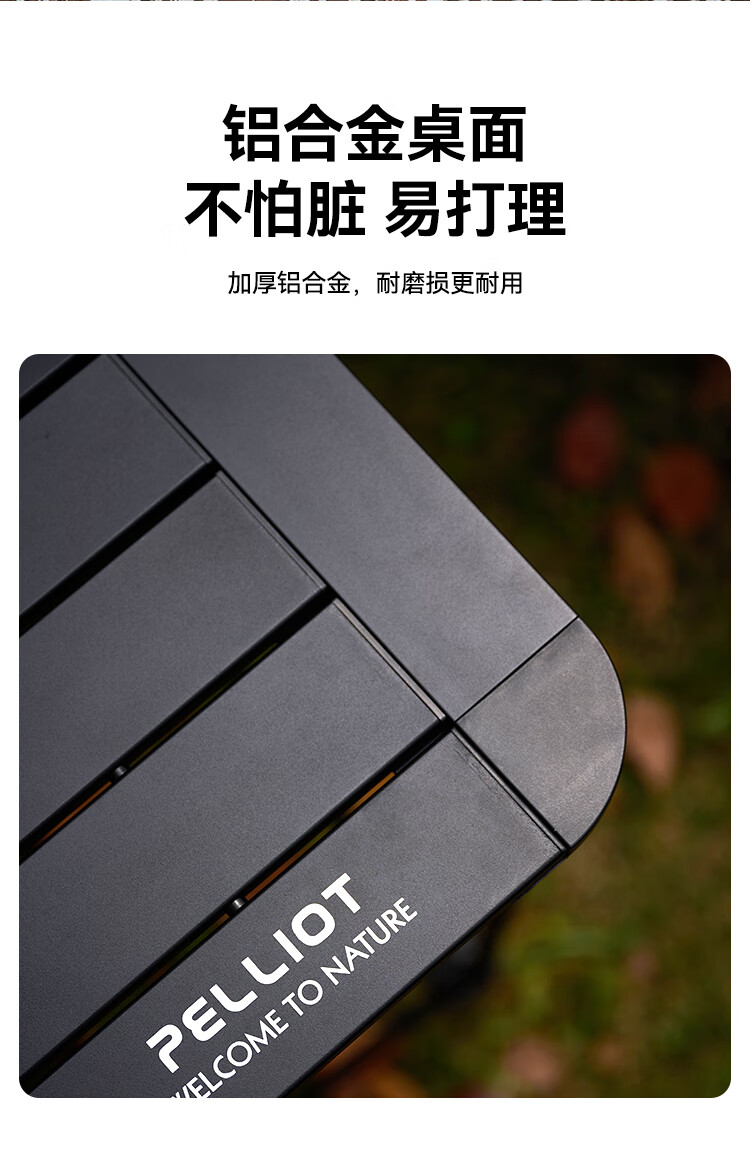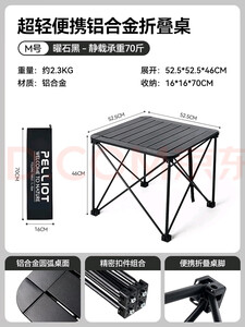 伯希和户外铝合金折叠桌椅超轻便携露营烧烤野餐桌子16106111曜石黑M
