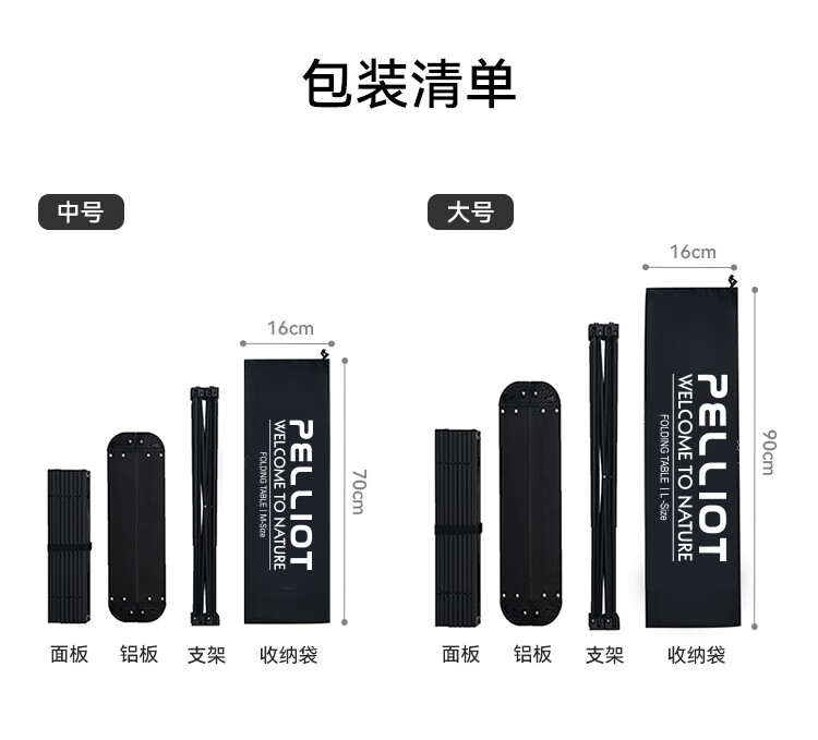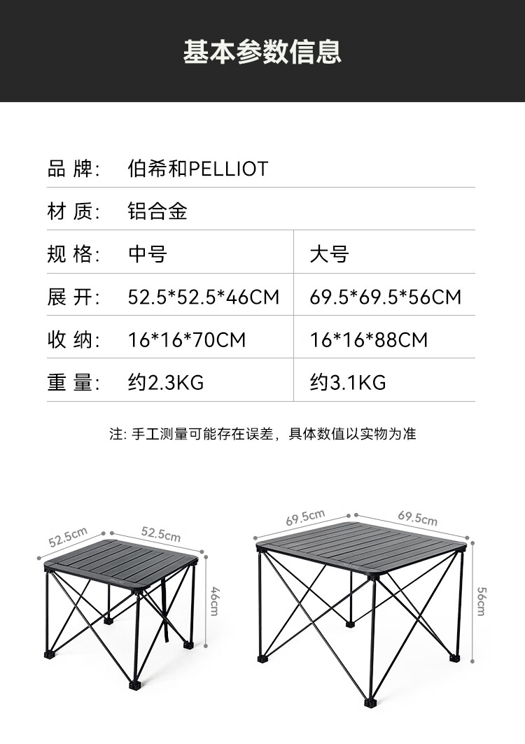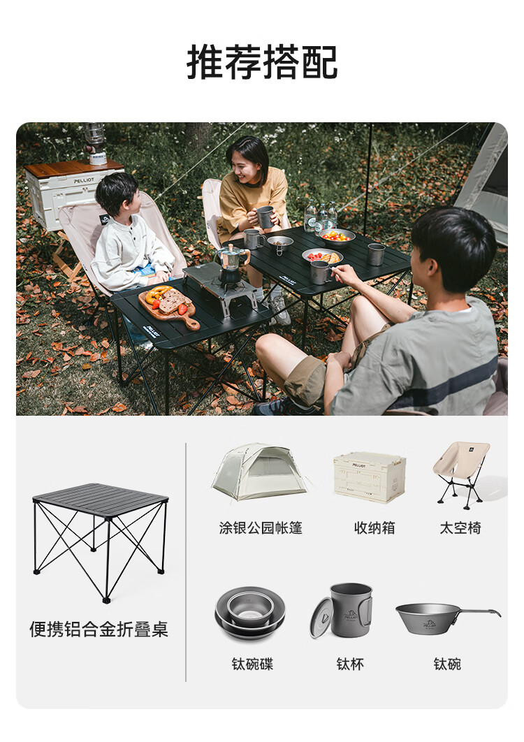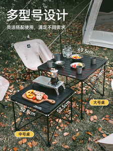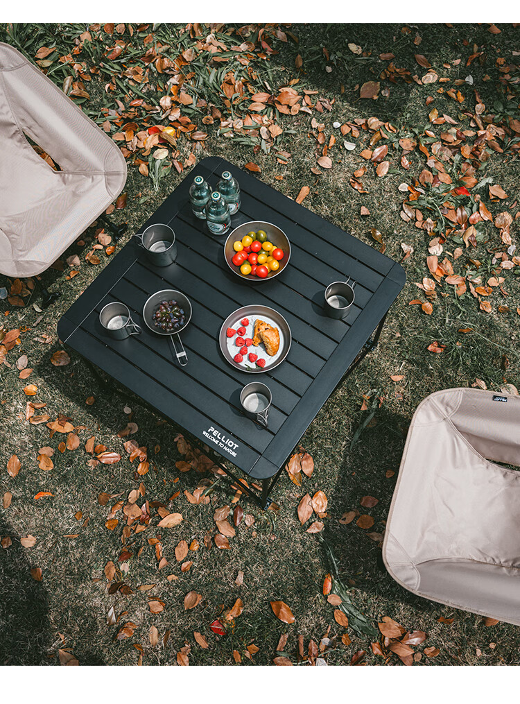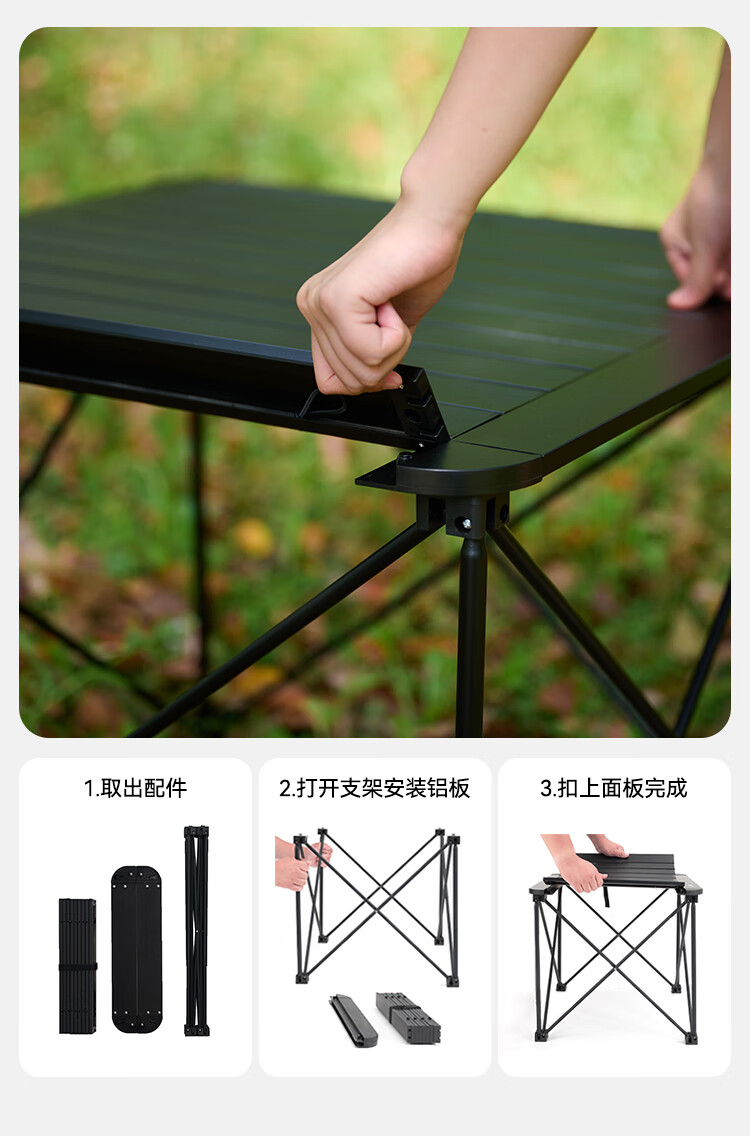 伯希和户外铝合金折叠桌椅超轻便携露营烧烤野餐桌子16106111曜石黑M