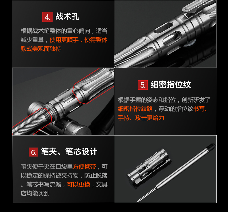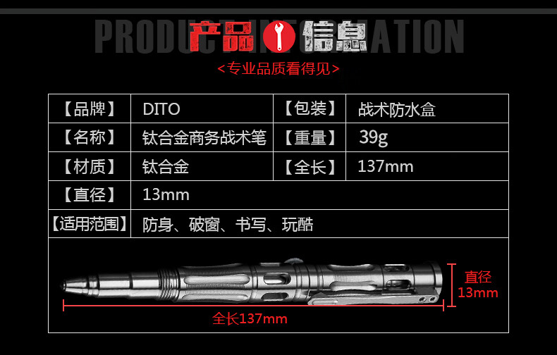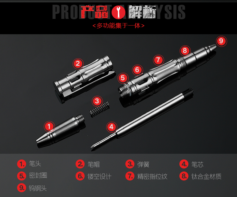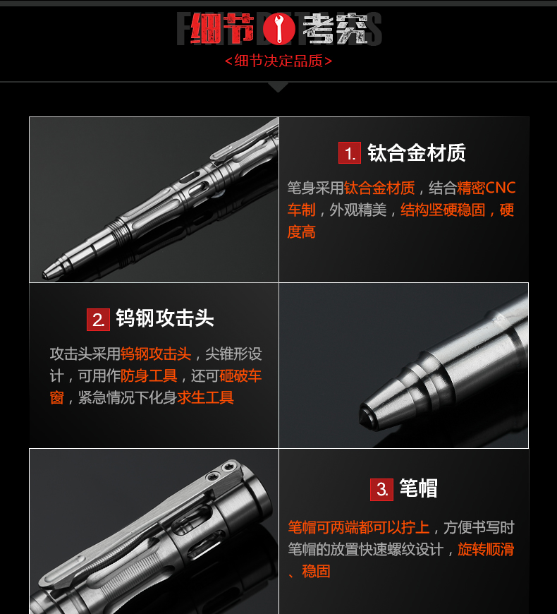 迪拓钛合金战术笔多功能合法防身用品防狼器防身暗器装 升级款