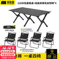 探险者蛋卷桌户外折叠桌便携式露营桌椅套装家用茶几桌椅野炊全套装备 120cm磨砂黑折叠蛋卷桌+收纳包